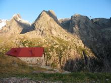 • La Capanna Mambretti. Il bollo rosso indica il passo della Scaletta