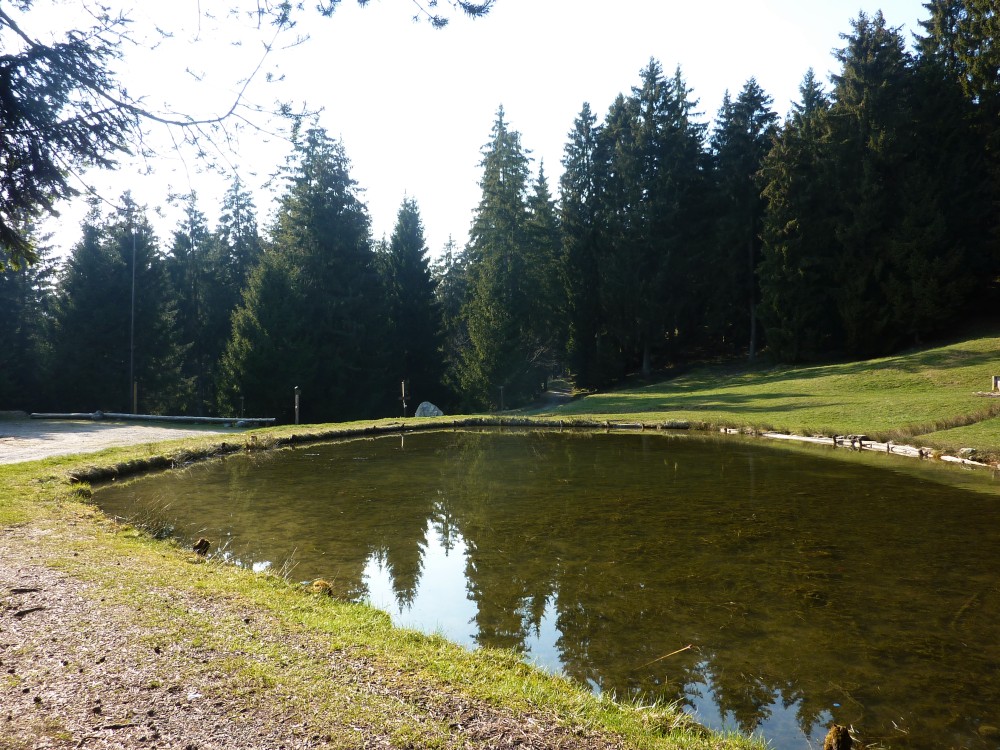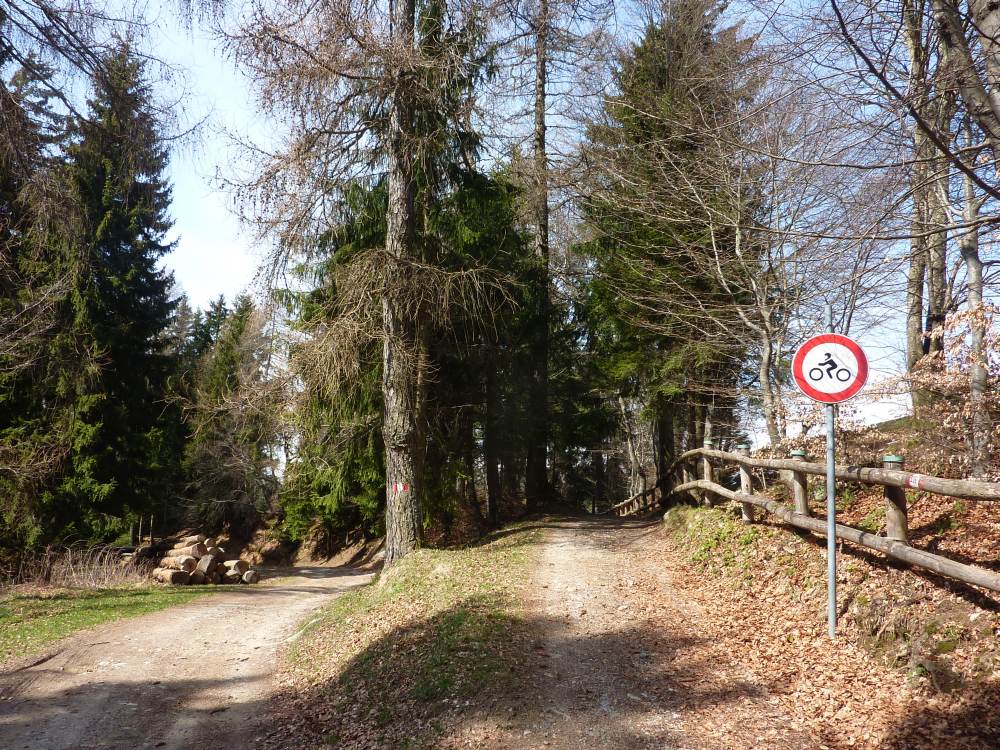 Il percorso inizia dalla zona più alta di Bossico (875 m). Il sentiero sterrato entra nel bosco e, all'uscita, comincia una rapida salita con acciottolato chiamata “la vià Rata”, lunga circa 200 metri. In cima alla salita appaiono i meravigliosi prati di Onìt (Onito), con rade cascine, sparsi in primavera di gialle fioriture di ranuncoli, margherite, myosotis, ecc. Lontano a sinistra si vede il monte Torrione e a destra, in alto, il M. Colombina. Ad un certo punto la strada si biforca, si gira a destra e si entra in mezzo a bellissimi e assolati prati in lieve pendio. In cima al prato ci sono due cascine, una a destra e una a sinistra (1080 m) e il sentiero si snoda nella pineta. A destra una strada porta alle cascine dei Plass, avanti la strada si avvia pianeggiante verso la valle di Glòf. Attraversata la valle, di solito sempre asciutta, la strada piega bruscamente a ponente e, dopo un centinaio di metri, si arriva a uno spiazzo-radura dove c'è uno stagno, detta "pozza d'Ast" e una piccola e nuova cappella inaugurata nel luglio del 1973. Dopo la radura, per proseguire verso il Colle S. Fermo, bisogna imboccare il sentiero a destra in salita. Si cammina fra un alternarsi di salite e pianori sempre ombreggiati da abeti e faggi, in uno scenario altamente suggestivo. Dopo un chilometro e mezzo circa, si giunge al delizioso ripiano del Colle S. Fermo (1250 m), ai piedi del verdeggiante M. Colombina. Il luogo è costellato da varie cascine con intorno piante di noci e ciliegi. Qui, presso una bella pozza dove si specchiano vecchi faggi e cascine, esiste una chiesetta del 1902. In occasione dei restauri del 1963 furono aggiunti l'abside e un piccolo campanile con campanella. Nel 1982 fu di nuovo restaurata esternamente con l'aggiunta di un piccolo portico. Nell'interno, sopra l'altare, vi è un affresco con S. Fermo, ritenuto antico protettore degli animali, la Madonna e varie bestie domestiche. Sul lato sinistro vi è un quadro ad olio ancora con S. Fermo, Madonna e animali, eseguito da Pierina Benzoni di Songavazzo nei primi decenni del secolo scorso.