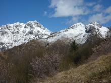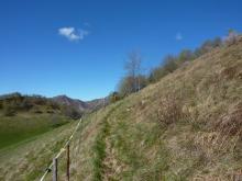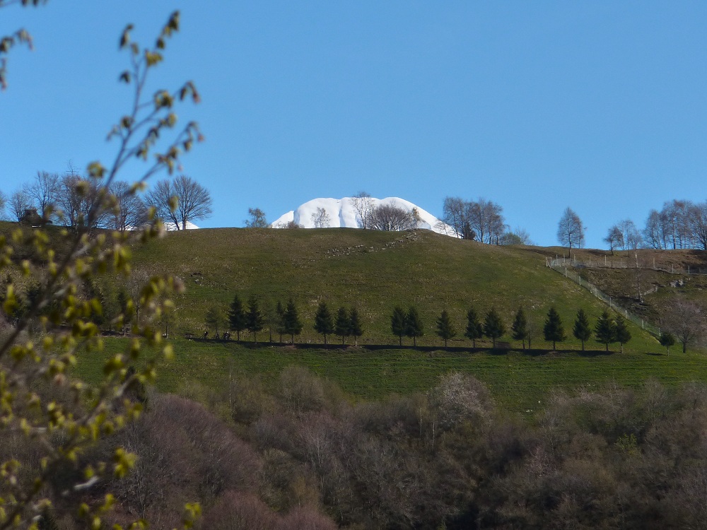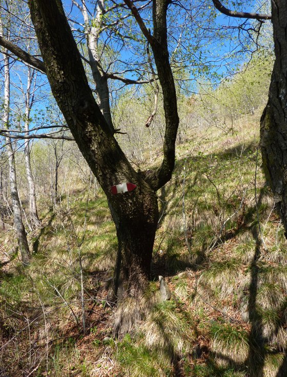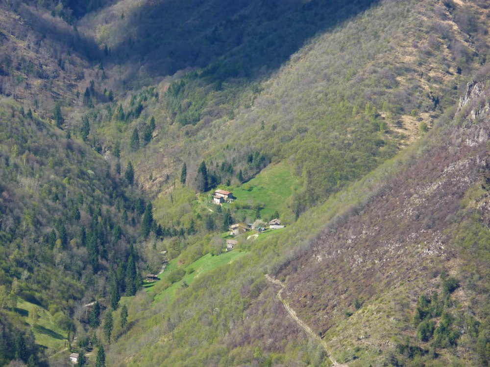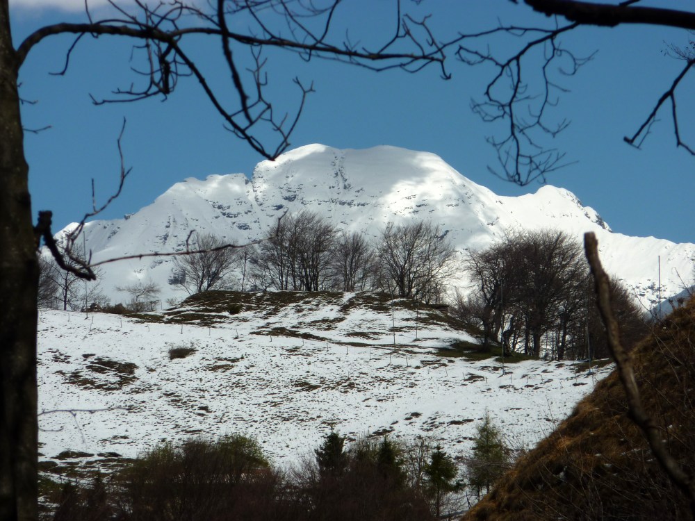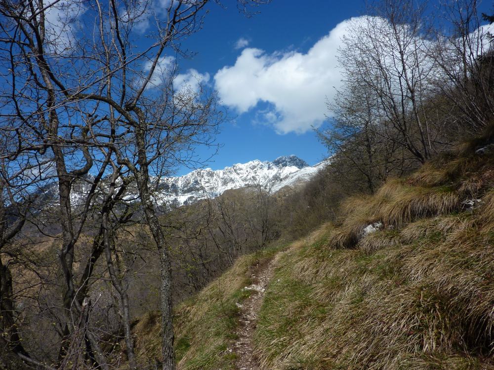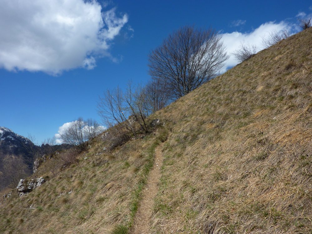 Salire per la Val Vertova per circa 3 km e, poco prima del ristorante del Lacnì (casa rossa), prendere la strada sulla destra a fianco di una chiesetta. Seguire la strada per la stalla Belò per circa 350 m e, attraversato il torrente, imboccare il sentiero che sale piuttosto ripido nel bosco. Si passa vicino alla baita Cap e, sempre seguendo l’ampia mulattiera, si giunge alla baita della Fracia. Si piega subito dopo a destra, per un sentiero meno marcato che permette di giungere al Col dol Pom da dove, con percorso dapprima pianeggiante e poi in moderata salita, si passa sopra i Prati di Ceresola e, piegando verso nord, si entra di nuovo nel bosco, salendo con lieve pendenza fino al Passo di Bliben, dove si incrocia il sentiero 530 diretto al Monte Alben.
