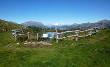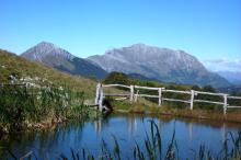• La Forcella di Valmana con la sua pozza viste da est. Sullo sfondo: il Resegone.