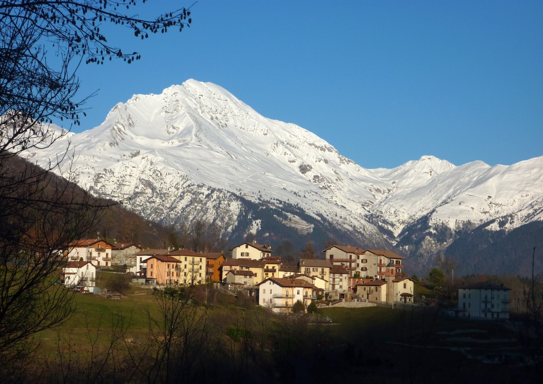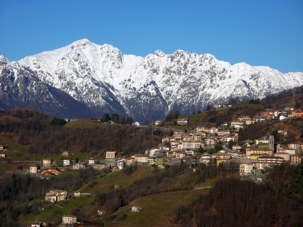 • Dossena con il monte Venturosa avvicinato dal teleobiettivo