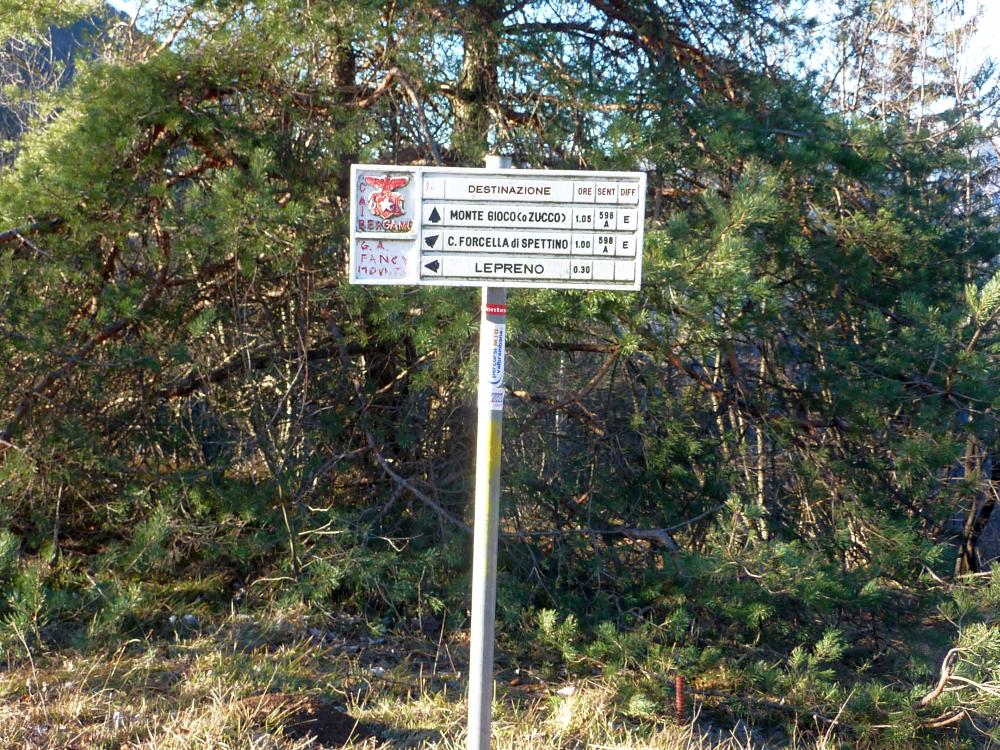 Il 598a - sentiero ad anello - inizia prima di entrare nel piccolo nucleo di Corone (1030 m). La traccia si stacca dalla strada asfaltata 30 m dopo aver lasciato sulla sx le indicazioni per l’albergo Miramonti. Il sentiero parte in discesa sulla dx (cartello segnaletico), incrociando presto uno sterrato che giunge dal piccolo centro di Corone. Proseguendo in piano si giunge là dove il 598a sdoppia (palina segnaletica), permettendo così di compiere un anello: proseguendo dritti si sale prima allo Zucchin e poi al M. Gioco mentre, andando a dx, si percorrerebbe il sentiero a mezzacosta sino alla forcella di Spettino, aggirando quindi da nord tali cime. Proseguiamo dritti, quindi, lasciando sulla sinistra un roccolo. Si prosegue ora in salita per arrivare sullo Zucchin (1209 m) poi si continua - ora assieme al sentiero 598 che sale da Lepreno - per arrivare sulla vetta del Monte Gioco (o M. Zucco, 1366 m, croce e libro di vetta). Si scende poi in direzione ovest sino ai prati della forcella di Spettino, ben visibile sotto di noi. Giunti alla forcella di Spettino, una freccia bianco-rossa su un muro ci indirizza verso dx, per un largo sentiero. Si transita nei pressi di una fontana/abbeveratoio, mantenendo però il sentiero di sinistra (indicazione per Corone). Si percorre ora un tranquillo sentiero a mezzacosta che, superate alcune vallette, ci riporta alla suddetta palina segnaletica là dove il 598a sdoppia: siamo ora sul sentiero percorso all’andata e basterà girare a sx per tornare, in piano, al punto di partenza.