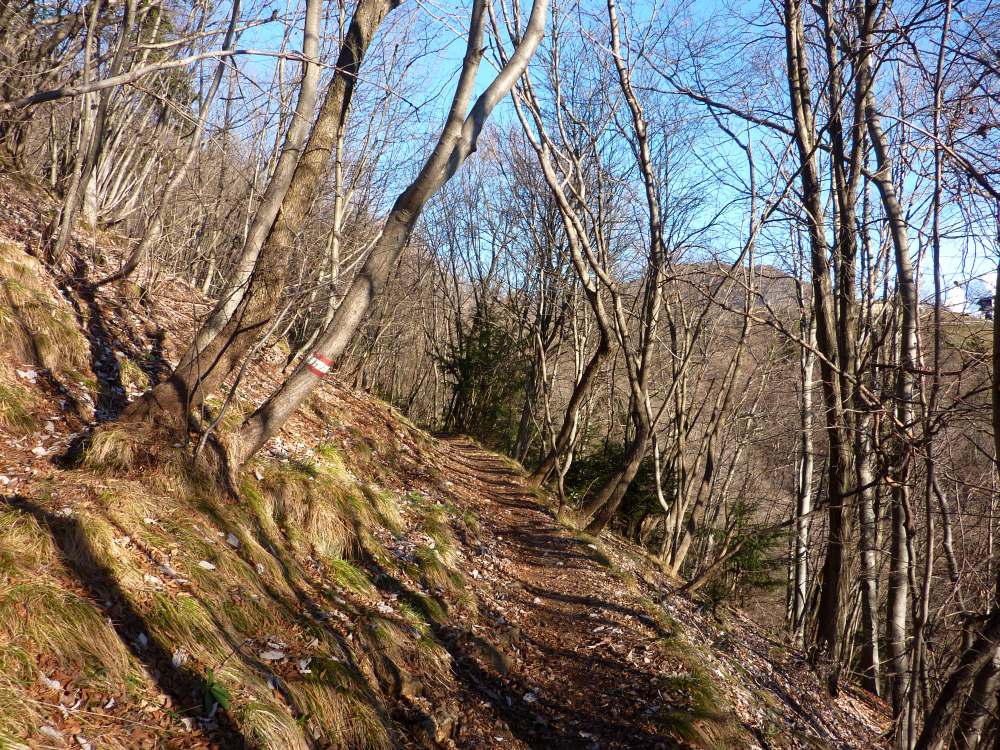 • Tornando a Corone sul pianeggiante tratto boschivo del 598a