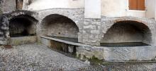 Percorso ad anello. Il punto di partenza del nostro sentiero è Fonteno (613 m), adagiato su una sorta di balcone naturale che si affaccia sul lago d'Iseo e sulla val Camonica. Lasciata l'auto a uno dei parcheggi nei pressi del centro storico, il nostro percorso inizia all'angolo di piazza Ongaro con v. Campello (palina con indicazioni, incrocio con sentiero 567). Si sale verso nord seguendo la strada asfaltata (dapprima v. Campello e poi v. Tasso) che, già offrendoci piacevoli viste sull’alto Sebino e verso il M. Guglielmo, più avanti si trasformerà nel sentiero che conduce al Colle di Luen (882 m). Giunti a quest'ultimo, il sentiero volge bruscamente a occidente, iniziando a salire dapprima in ambiente boschivo e poi per un pendio prativo sorvegliato da una cascina in alto sulla dx. Il panorama ora si allarga: se da un lato è possibile spingere lo sguardo sino all’estremità settentrionale del lago d’Iseo e alla bassa val Camonica, dall’altra parte si intravede la vetta del M. Boario, la nostra prossima tappa. Si rientra per poco nel bosco sbucando poi in una radura attrezzata con tavoli e panchine, in presenza di una piccola tribulina: la Santella del Boér. Si rientra ancora nel bosco uscendone più tardi nei pressi della boscosa vetta del M. Boario (1231 m). Il sentiero ora prosegue lineare verso ovest giungendo al Colle di Dis (a quota 1200 m, nei cui pressi si stacca la strada del Brugai, diretta verso il fondovalle e quindi a Fonteno) incontrando vari roccoli, fino a sbucare su una stradina che porta - incrociando il sentiero 620 - presso la Cascina Torrezzo (1336 m, incrocio con sentiero 612) per proseguire poi fino a giungere - presso il Colletto (1296 m) - al Monumento ai Caduti della Battaglia di Fonteno, avvenuta qui in zona nell’agosto del 1944. In breve si scende al Colle di Caf (1242 m, incrocio con sentiero 612A e sentiero 701) e seguendo le indicazioni, dapprima si giunge per strada sino alle località Cucche (1189 m, incrocio con sentiero 744) e Colle di Galena (1162m); poi si scenderà per sentiero sino al Colle Cargadura (1022 m, incrocio con sentiero 704 e sentiero 726). Qui si continua attraversando i tratti di bosco posti sotto le pendici meridionali del M. Pendola. In località Roncai si abbandona una carrareccia per attraversare il versante settentrionale della Punta del Bert (1105 m). Circa 800 m dopo di essa, si giunge a un bivio (incrocio con sentiero 721) dove - non senza esserci prima affacciati sul versante meridionale che offre una bella vista sul Sebino e Montisola - si lascia la stradina che prosegue dritta verso la vetta del M. Creò e si prende, invece, il sentiero che scende subito nel bosco a sx. Lo si segue fino a che si muterà in stradina e poi ancora sino a giungere sul fondovalle, dove un ponte ci permetterà di attraversare il torrente Zù. Infine, per stradina asfaltata, si salirà alla particolare fontana del Córen, ormai prossimi al centro di Fonteno.