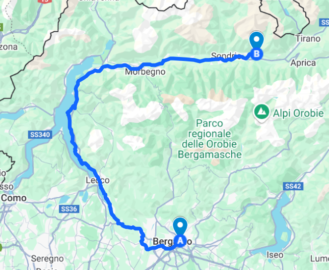 Dal Palamonti verso Lecco, SS36, SS38, oltrepassato Sondrio, poco prima del ristorante San Carlo di Ponte in Valtellina si prende a sinistra fino alla piazza di via Roma.