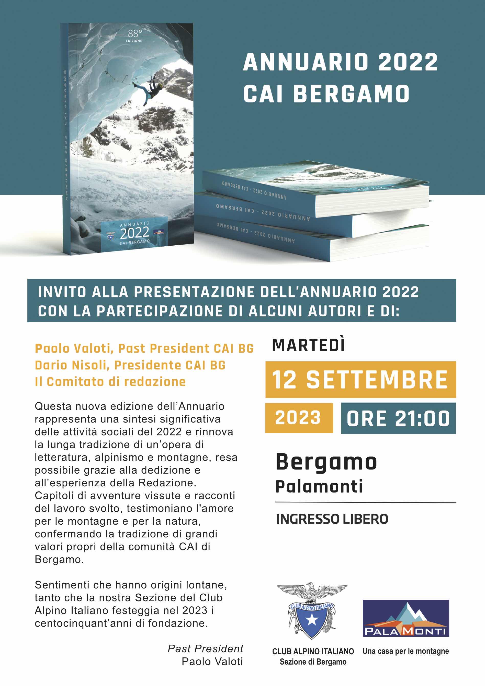 Commissione annuario Martedì 12 Settembre Cosa Convegno / incontro Martedi 12 Settembre 2023 ore 21 c/o Sala Conferenze Palamonti Allegati Locandina Presentazione Annuario 2022.pdf Quando Quando Mar, 12/09/23, 21:00 - 22:00 Dove Luogo di svolgimento via pizzo della presolana 15 24125 bergamo BG Italia