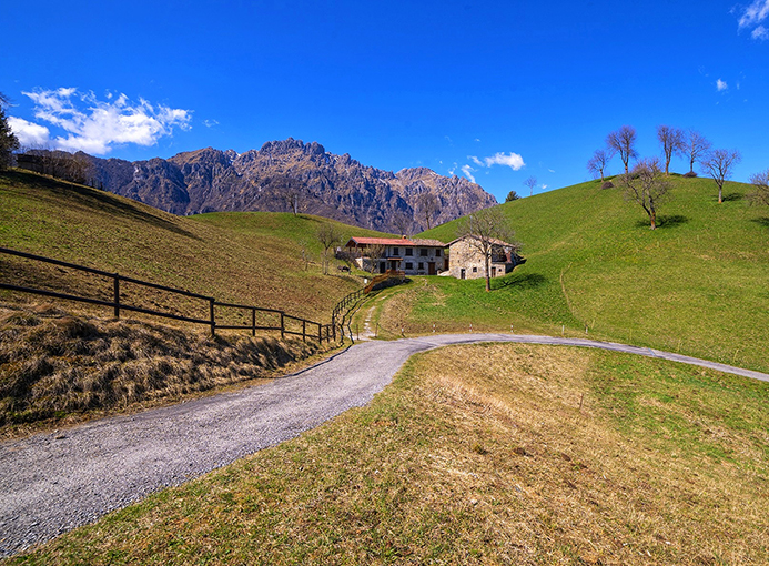 Dal parcheggio presso la ex “Pizzeria 3 camini” si procede verso la SS671 per iniziare la salita verso Premolo, fino alla Contrada “Bracc”. Poco oltre, si prosegue su strada agro-silvo-pastorale (sentiero CAI 262), con tratti ripidi e sostenuti per circa Km. 2, sempre