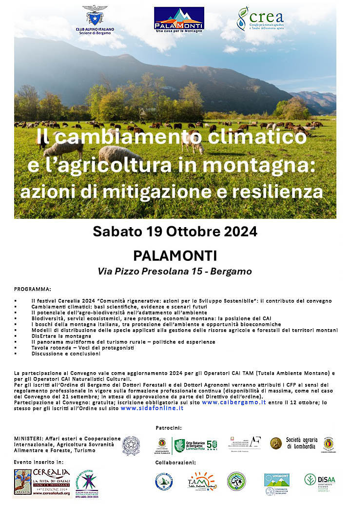 Partecipazione al Convegno: gratuita; iscrizione obbligatoria sul sito www.caibergamo.it entro il 12 ottobre; lo stesso per gli iscritti all’Ordine sul sito www.sidafonline.it.