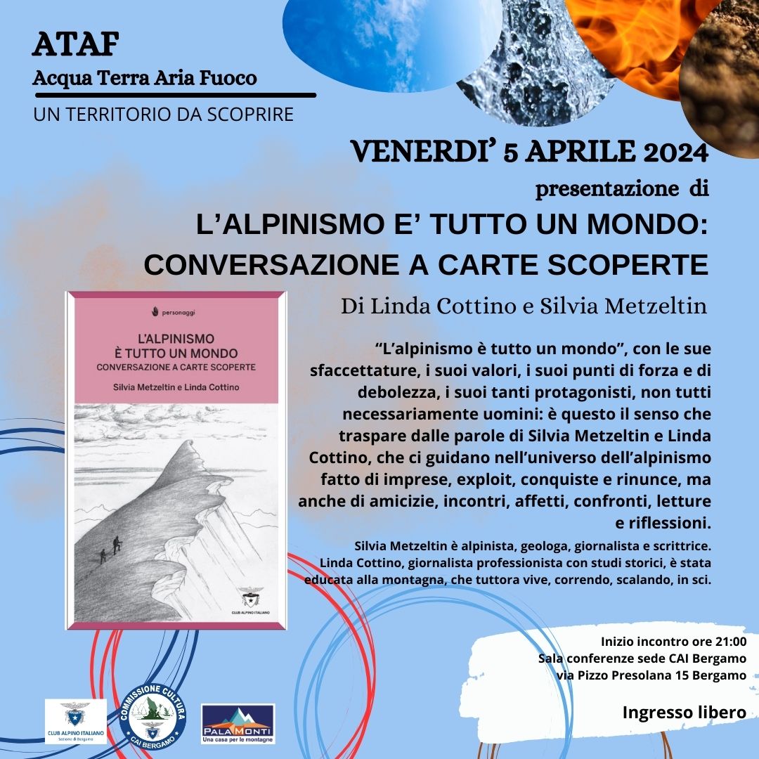Commissione cultura Venerdì 05 Aprile Cosa Convegno / incontro Allegati L'ALPINISMO E'TUTTO UN MONDO: conversazione a carte scoperte Quando Quando Ven, 05/04/24, 21:00 - 23:00