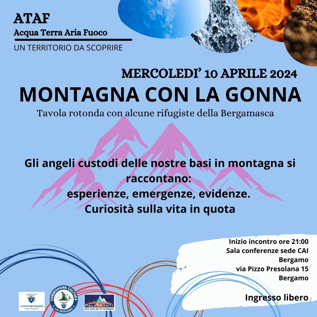 Commissione cultura Mercoledì 10 Aprile Cosa Convegno / incontro Allegati MONTAGNA CON LA GONNA Tavola rotonda con alcune rifugiste della Bergamasca Quando Quando Mer, 10/04/24, 21:00 - 23:00 Dove Luogo di svolgimento Via Pizzo della Presolana 15 24125 Bergamo BG Italia