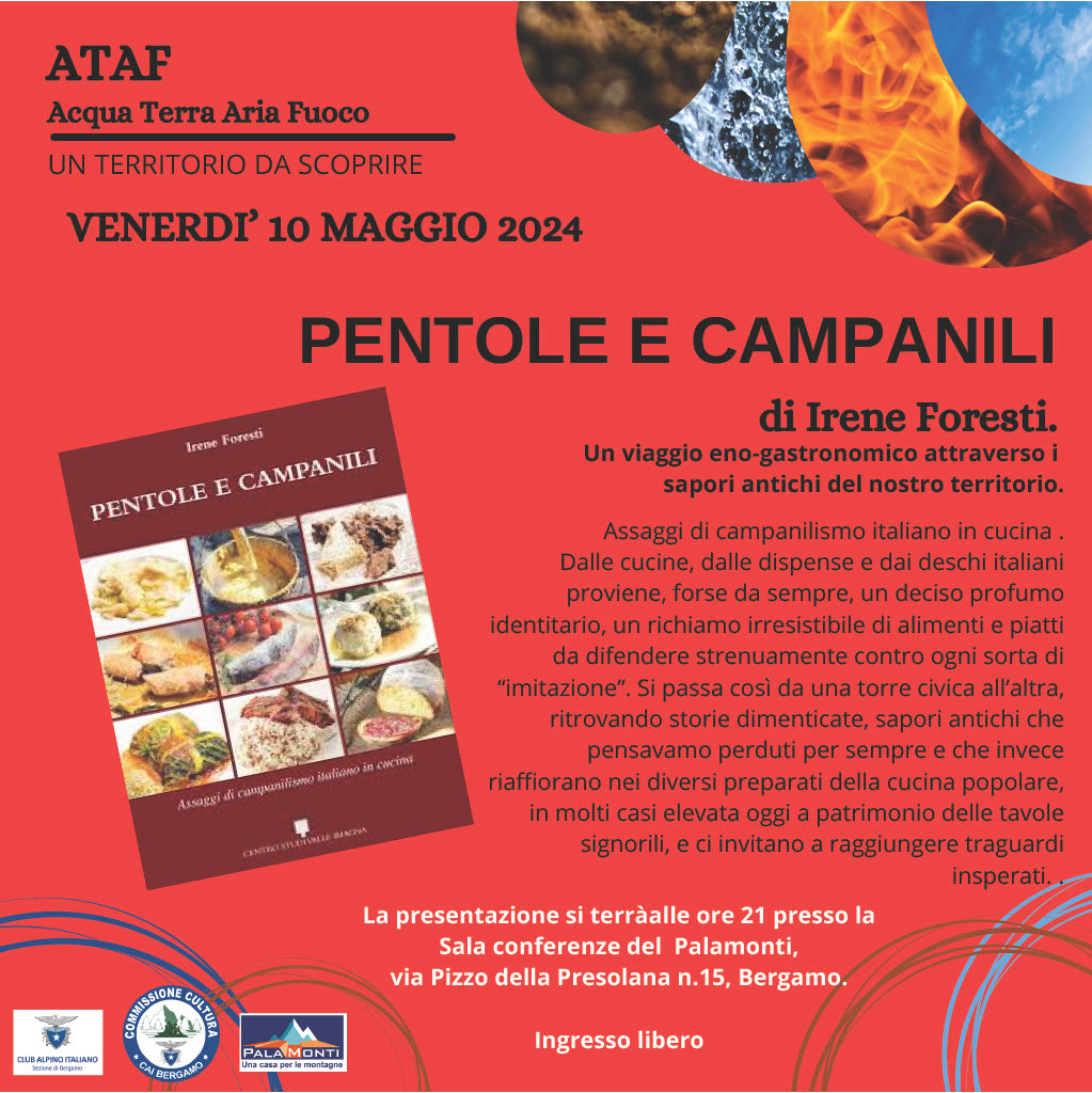 Commissione cultura Venerdì 10 Maggio Cosa Convegno / incontro Allegati PENTOLE E CAMPANILI di Irene Foresti Un viaggio eno-gastronomico attraverso i sapori antichi del nostro territorio Quando Quando Ven, 10/05/24, 21:00 - 23:00 Dove Luogo di svolgimento Via Pizzo della Presolana 15 24125 Bergamo BG Italia
