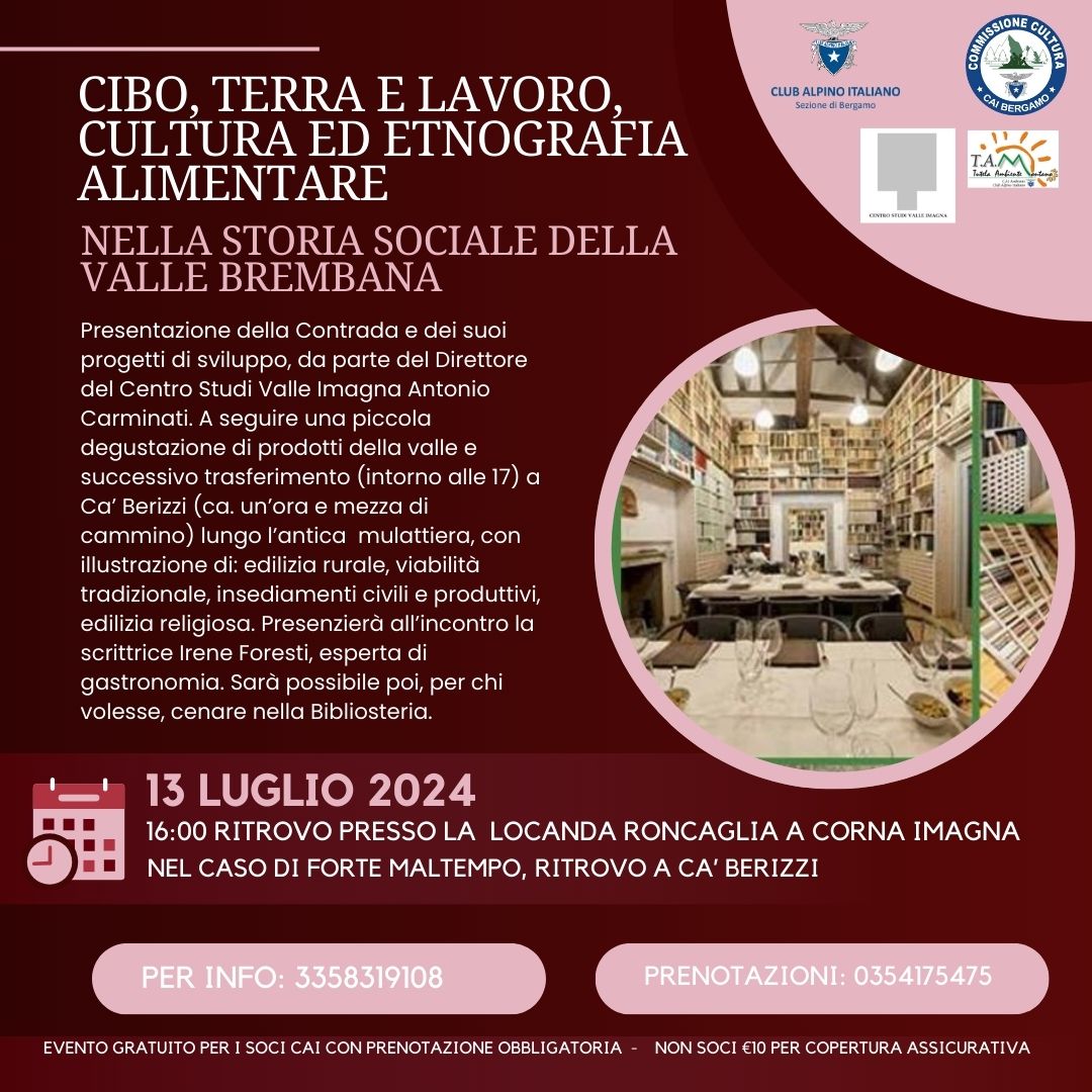 13 luglio 2024 Ritrovo alle ore 16 presso la locanda Roncaglia in via Roncaglia 4 a Corna Imagna (Bg). In caso di maltempo ritrovo a Cà Berizzi sempre a Corna Imagna (Bg)