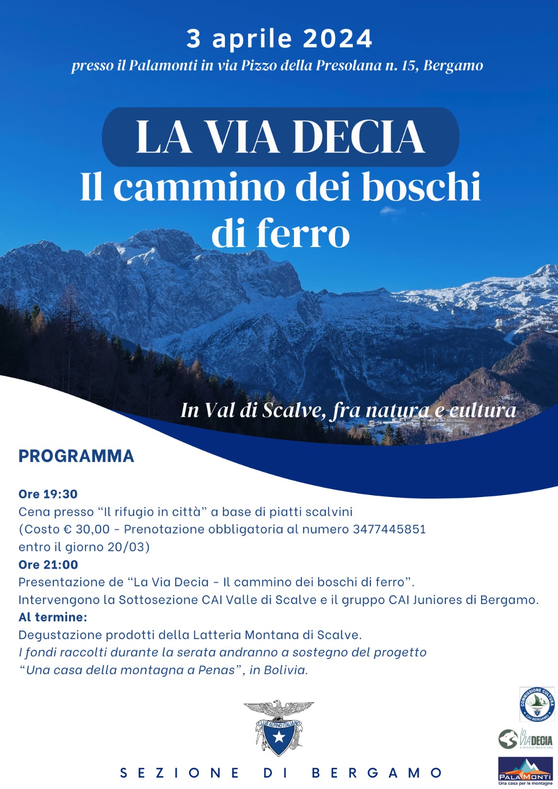 Ore 21.00 : presentazione de "La Via Decia" con l'intervento della Sottosezione CAI Valle di Scalve e il gruppo CAI Juniores di Bergamo.