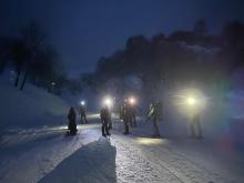Equipaggiamento: abbigliamento adeguato alla stagione ed alla quota. Obbligatori kit artva, pala e sonda/scarponi alti/ghette/ciaspole/ramponi/pila frontale.