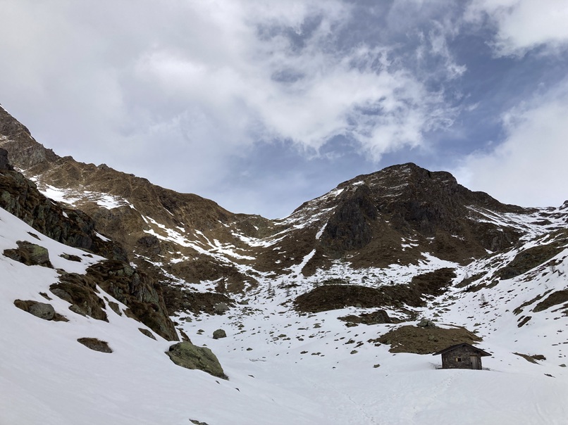 In centro foto, la depressione detta Foppana. Sulla sx: la Cima di val Sedornia.