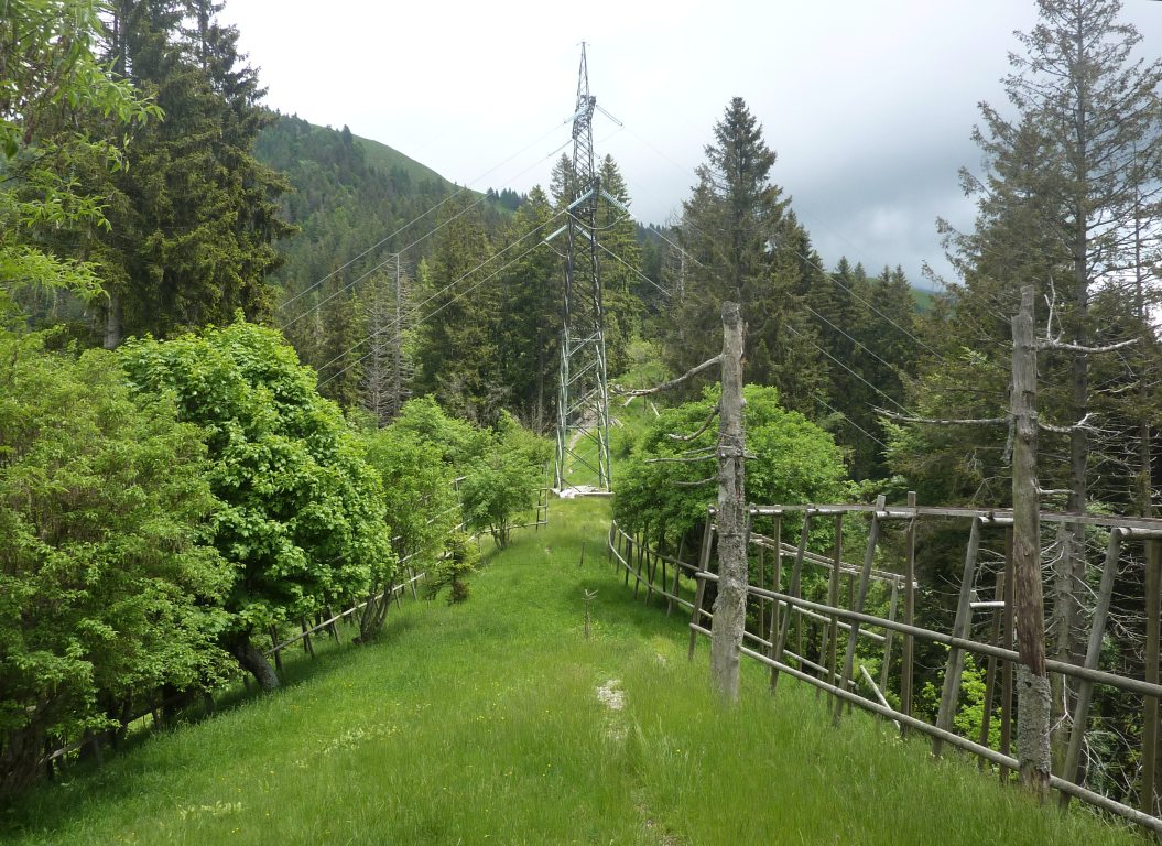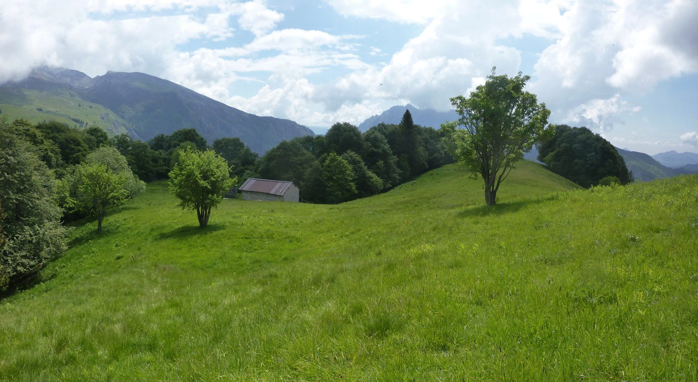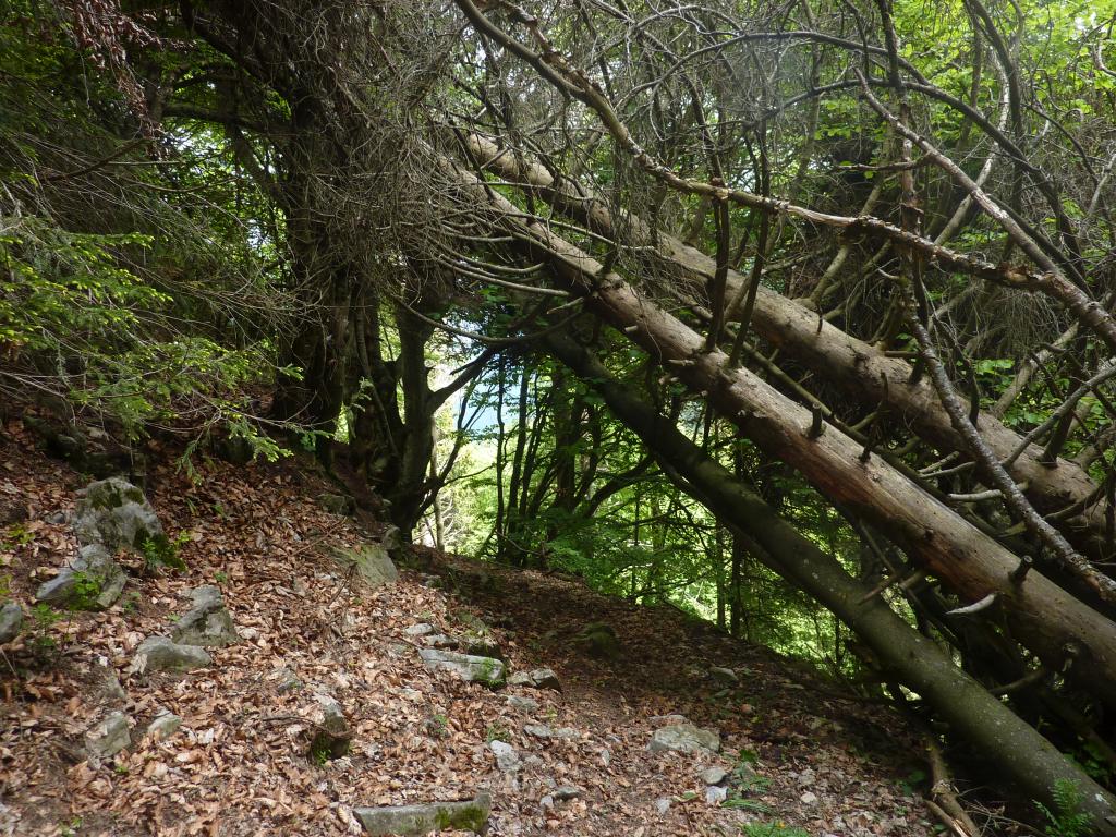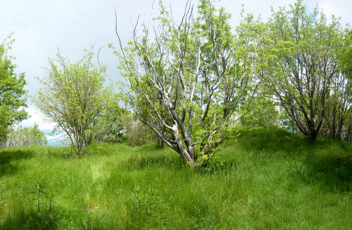 La Rolla, crocevia di sentieri, zoomata dalla cresta SO del M. Bronzone percorsa dal 719.