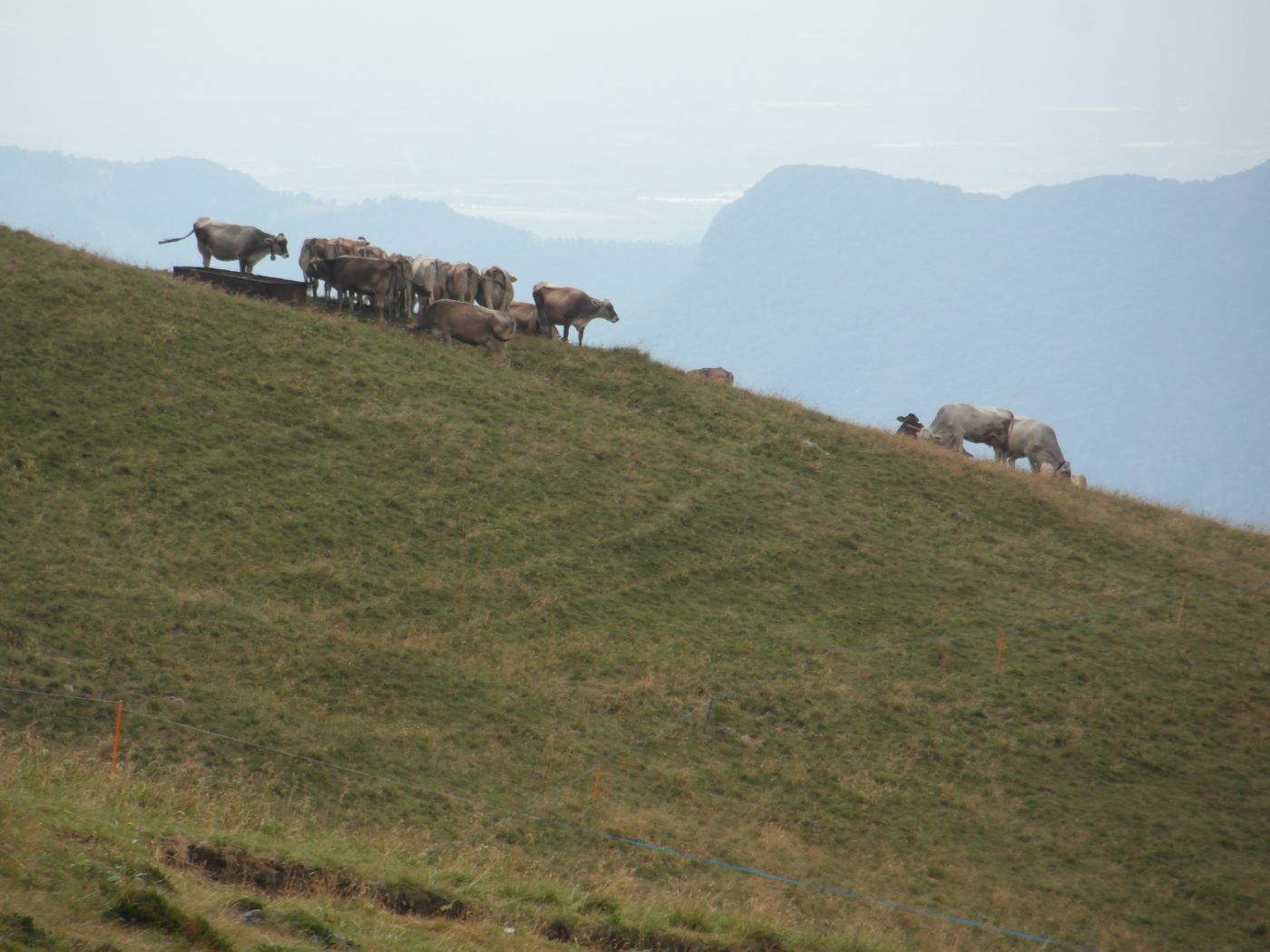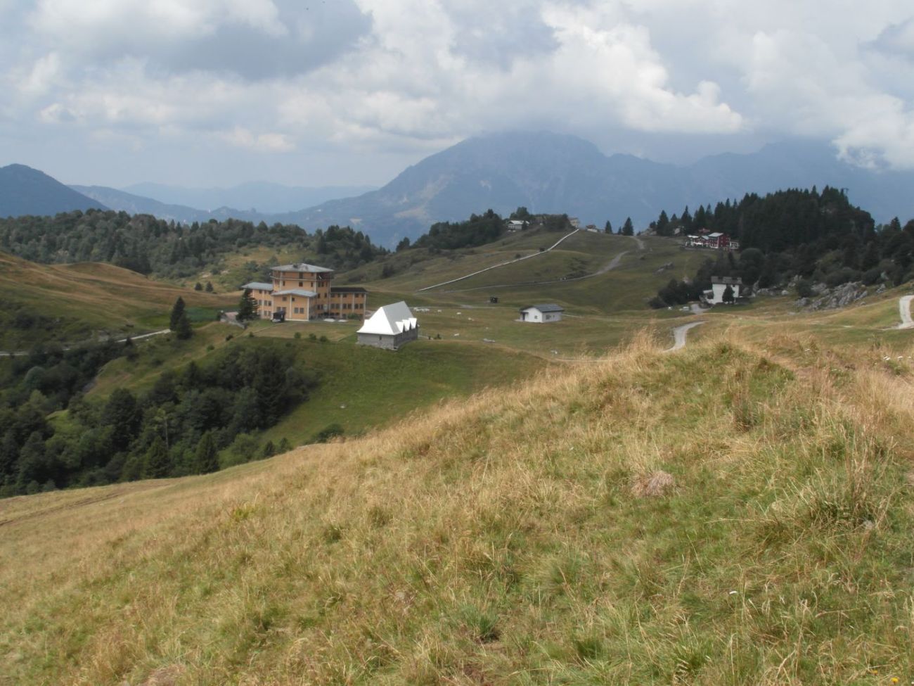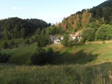 Dopo circa 1.20 h si raggiunge l’ampio pianoro dominato dall’ex Rif. C. Battisti e il sentiero 120 (foto 14). In breve con questo si raggiunge il rif. CAI Angelo Gherardi (1647 m - h 5.30) (foto 15). Sempre lungo il 120 che attraversa i pascoli dell’Alpe “Alben di Mezzo” si prosegue la discesa per rientrare infine nel bosco e raggiungere il parcheggio di Capo Foppa (h 6.30).