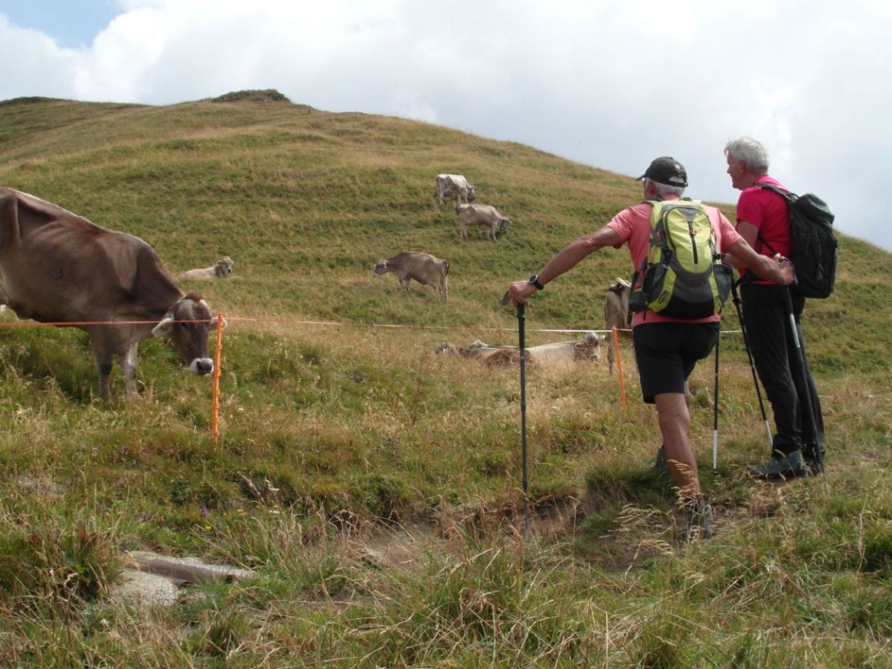 Il passo è un importante quadrivio, da cui è possibile seguire il segnavia 102 verso il passo di Grialeggio (e il M. Cancervo), scendere a Cassiglio col segnavia 101 oppure proseguire nel nostro percorso sempre sul 101 (Sentiero delle Orobie Occidentali) ma verso la Baita Cabretondo. Si sale a mezzacosta per raggiungere dopo poco la Baita Rudera (1.620 m) (foto 4) attraversando i vasti pascoli dell'Alpe “Alben di Mattina” posti al di sotto delle creste del P.zo Baciamorti e del M. Aralalta (foto 5), raggiungibili col sentiero 101A che si stacca pochi metri a monte del Passo Baciamorti. Dopo un breve tratto con maggiore pendenza si giunge all’ampio pianoro ove si trova la Baita Cabretondo (1866 m - h 1.10 dal P.so Baciamorti) (foto 6).