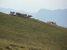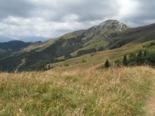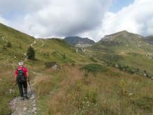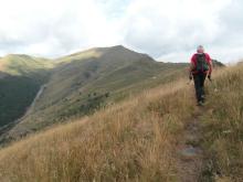 Si prosegue ora attraversando le praterie dell’Alpe “Aralalta” (foto 7 e 8) sempre lungo il segnavia 101, rimanendo ora sul versante della Val Taleggio, ora su quello della val Stabina, alternando brevi tratti con diverse pendenze, mai impegnativi, fino a giungere al Passo del Sodadura (1867 m) e al Rifugio Nicola (1863 m - punto di ristoro - h 3.30). Si prosegue ora lungo la strada sterrata che scende ai Piani di Artavaggio passando nei pressi della Malga Moje (foto 9 e 10) (1740 m - vendita prodotti caseari) e, dopo circa 30' e una volta giunti ai Piani (1640 m), poco prima di arrivare alla chiesa, si imbocca sulla sinistra il sentiero con segnavia 150A; questo ha una prima parte con fondo in pietra e cemento e permette, senza compiere eccessivi dislivelli, di attraversare il versante sud del M. Sodadura (foto 11, 12 e 13) attraverso i pascoli dell’Alpe “Aralalta” con le Malghe Scannagallo e Chignolazzo visibili più a valle.