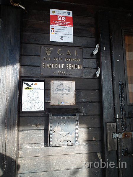 Il Rifugio Benigni, di proprietà della Sezione CAI Alta Valle Brembana, di gradevole aspetto e di piccole dimensioni, è situato (a quota 2222 m) sulla testata della Valle di Salmurano, a breve distanza dal Lago Piazzotti.