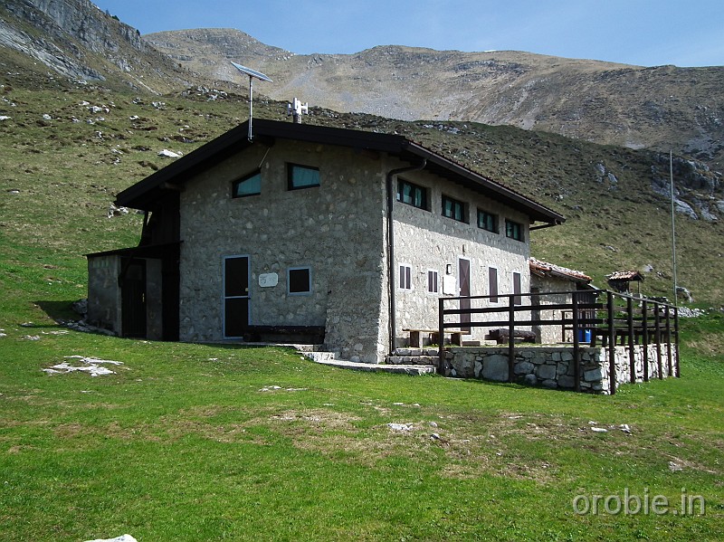 Sui dolci pendii del monte Golla, affacciato sull'alta Valle del Riso, questa baita sociale del CAI Leffe (chiamata anche Baita Golla, 1756 m) è una preziosa base d'appoggio per gli escursionisti che percorrono i numerosi sentieri che raggiungono le vicine e facili vette della Cima di Grem e del Monte Golla.