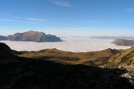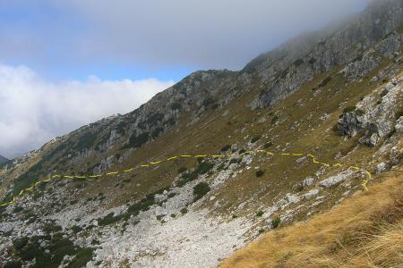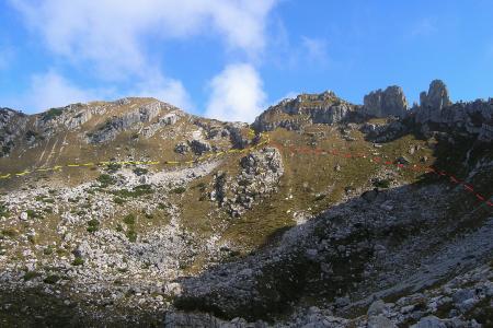Dal rifugio Cazzaniga-Merlini (1885 m) si procede in direzione nord verso una sella (1913 m) posta tra la Cima di Piazzo e lo Zuccone Campelli.