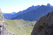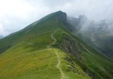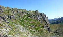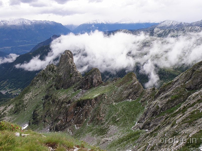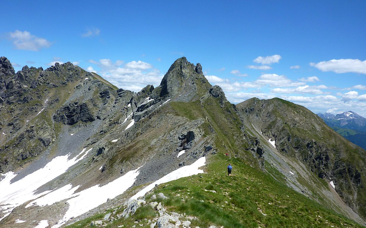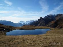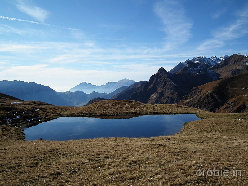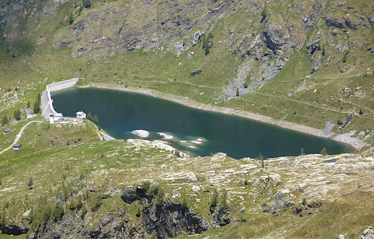 Dal rifugio Benigni (2222 m) si scende alla sottostante conca erbosa e al ripido canale roccioso che si percorre con attenzione, soprattutto in caso di clima umido o dopo temporali o nevicate improvvise. Giunti alla base si prosegue a mezzacosta, arrivando rapidamente al passo di Salmurano (2017 m) da dove è ben visibile il lago artificiale di Pescegallo.