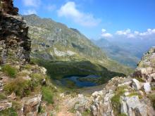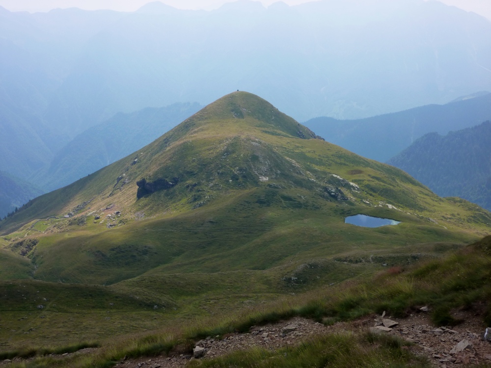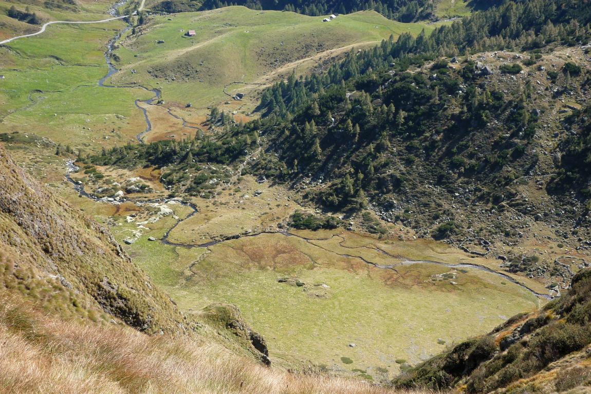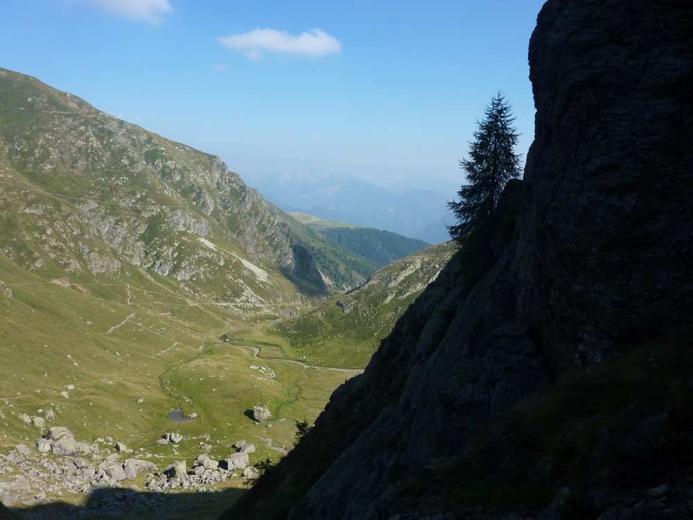 Procedendo si raggiunge una forcella e, passando sul lato opposto, si discende un vallone, si piega a sinistra e si attraversano i pendii orientali del M. Ponteranica, per poi raggiungere il pianoro dell'Acquanera (1750 m).