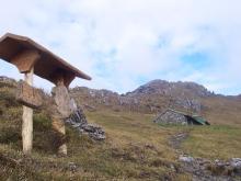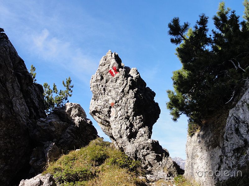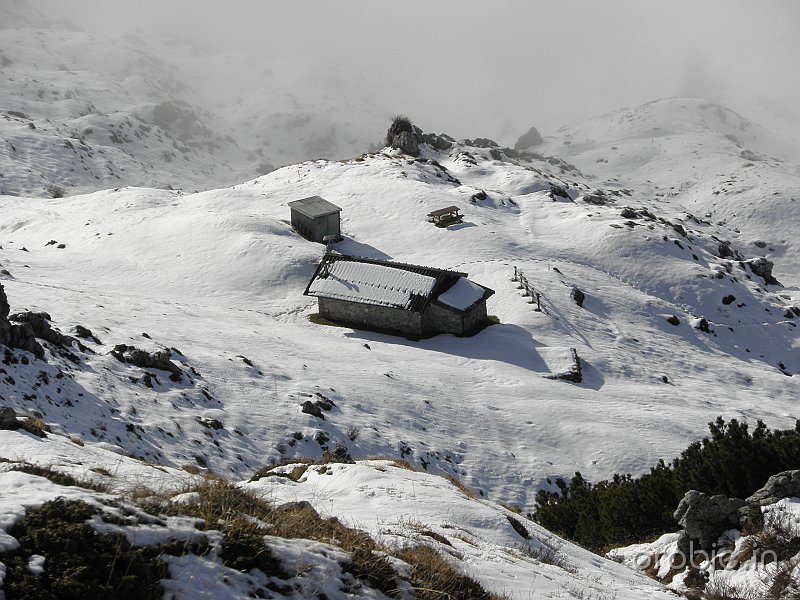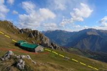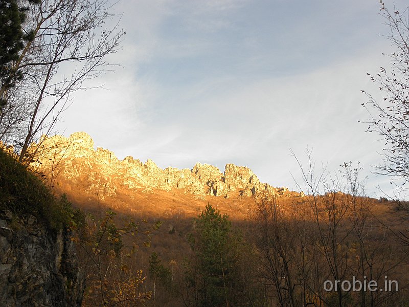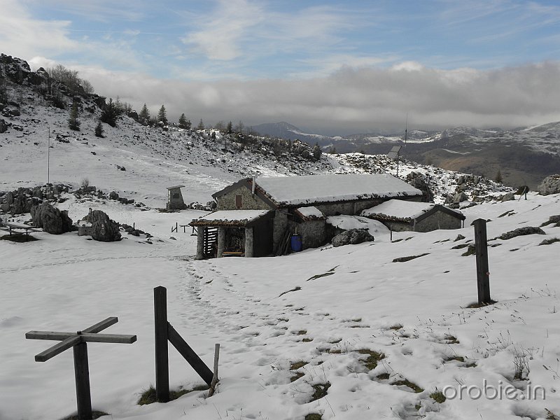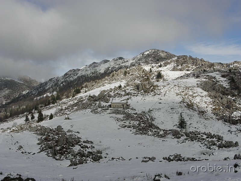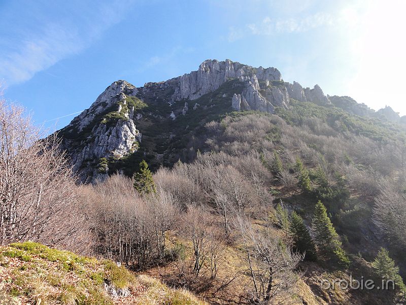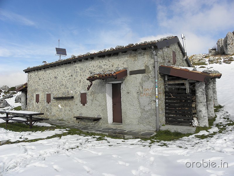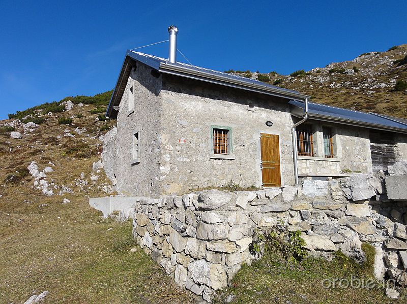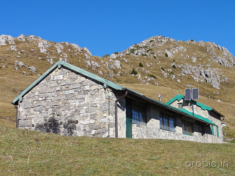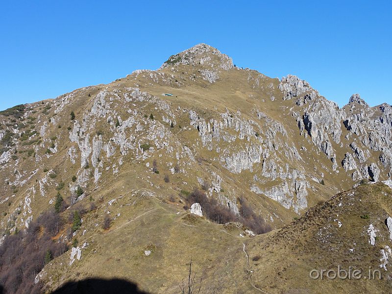 Si prosegue su ripido sentiero, in alcuni tratti attrezzato, tra roccette e pinnacoli rocciosi, sino a sbucare in un ampio pianoro a pascolo e bosco che, percorso, conduce senza grossi dislivelli alla baita casera Cancervo (1654 m) incrociando il - sentiero 130) che sale da Taleggio e termina presso la Baita..