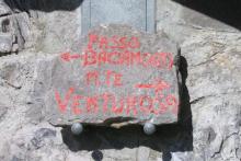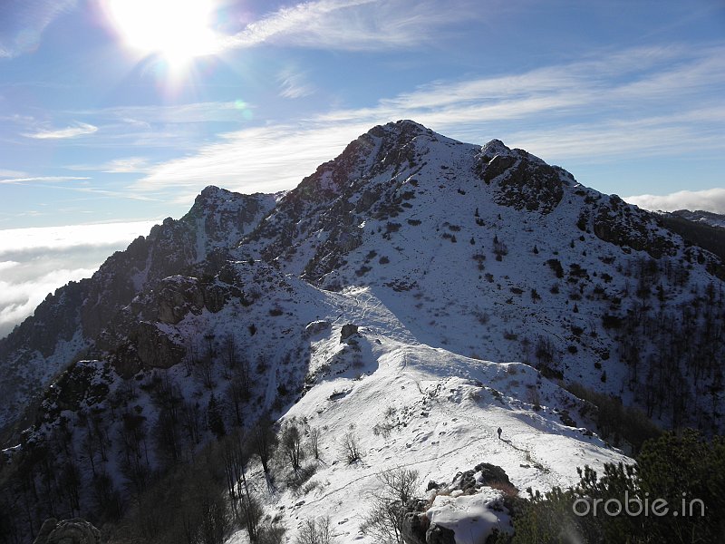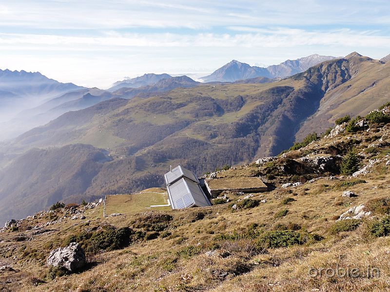 Proseguendo con alterne pendenze si arriva infine al passo Baciamorti (1540 m) dove si incrociano il sentiero 101 che sale da dx (Cassiglio) e il sentiero 153 che sale da sx (da Capofoppa, Pizzino) e termina al Passo.