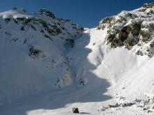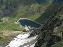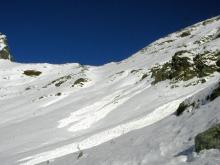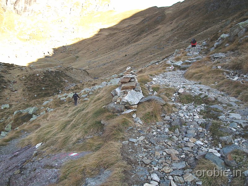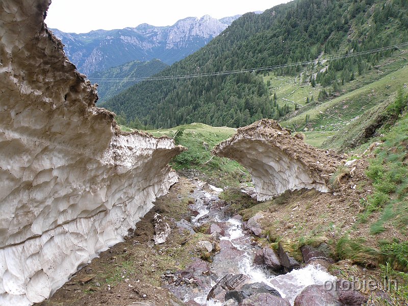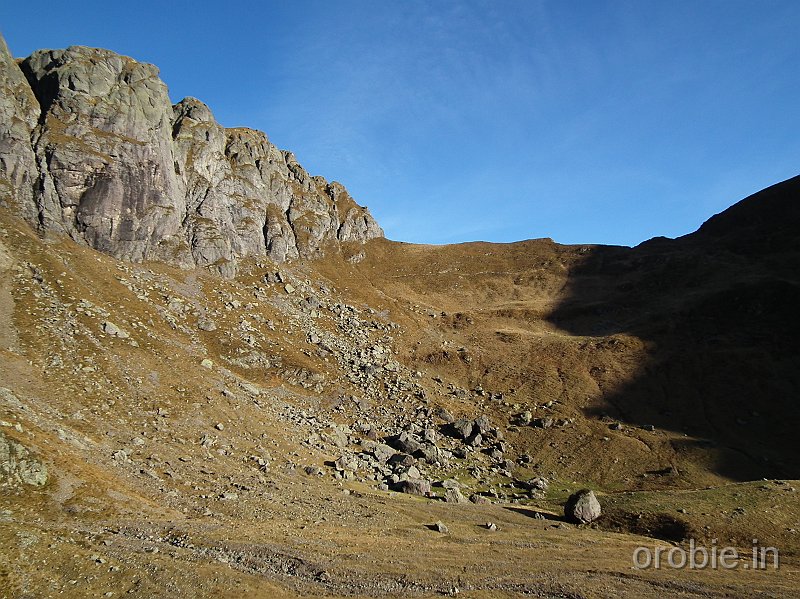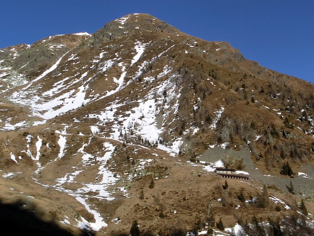 Giunti ai piedi del pizzo di Giacomo e usciti dal bosco, si riattraversa il torrente e si continua in direzione nord fino a incrociare il sentiero 108 che sale dalla baita Sciocc.