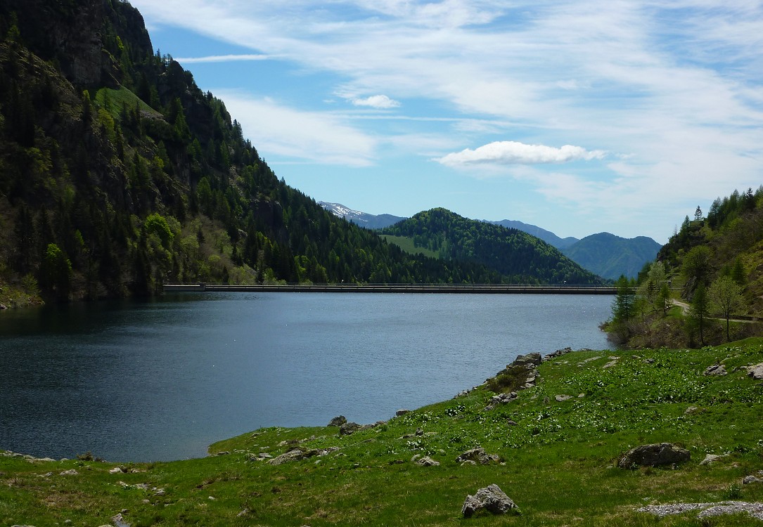 Il sentiero parte dalla località Caprile inferiore (840 m), posta a circa 2 km a nord di Averara. Si risale la val Mora sul lato sinistro (destra orografica) passando dalle baite Losco (933 m) e proseguendo con pendenza moderata prima, più sostenuta poi, fino alla casa dei guardiani della diga del lago di Valmora. Dopo una breve galleria ed alcuni tornanti si raggiunge la sommità della diga (1546 m), si continua per la carrareccia che costeggia il lago, si risale l'ampia conca posta sotto il passo San Marco e si raggiunge, infine, la casera Ancogno (1759 m). Seguendo poi la strada carrozzabile e tratti della via Priula, si arriva in breve al rifugio Ca' San Marco (1830 m).