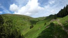 Si parte dalla località Ponte dell'Acqua (1272 m circa) posta lungo la S.P. che conduce da Mezzoldo al passo San Marco. Appena superato il bacino artificiale si nota sulla sinistra una stradina e la segnaletica che indica l'inizio del sentiero. Si sale per il bosco di conifere, lungo l'antica mulattiera che conserva ancora molti tratti in selciato, fino a sbucare nei pascoli e raggiungere la casera Ancogno (1757 m). Per tratti di strada e di "Via Priula" si raggiunge in breve il rifugio Ca' San Marco (1830 m).