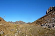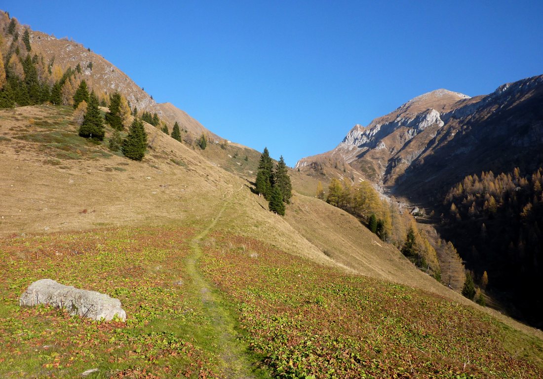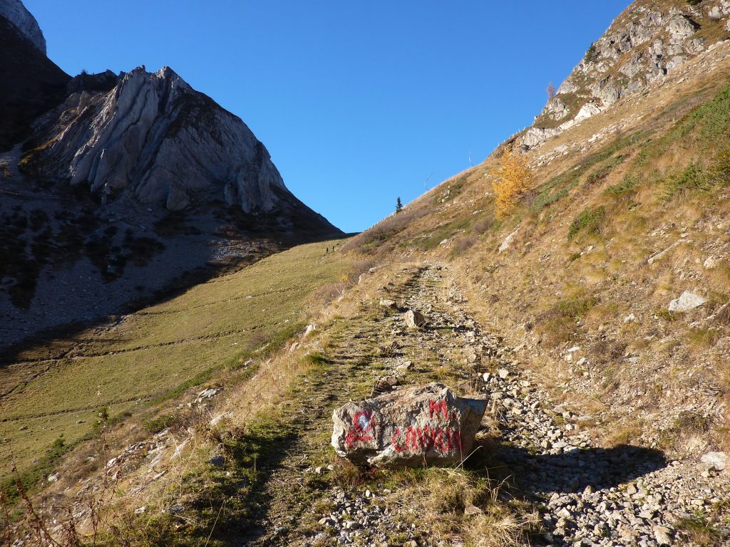 Dalla località Ponte dell'Acqua (1270 m circa) sopra Mezzoldo si imbocca la mulattiera che sale a destra nel bosco (lato sinistro orografico della valle). Raggiunta la val Terzera si guadagna quota con tornanti e, dopo essere transitati nei pressi di una cascata, si raggiunge la baita La Casera (1604 m). Si continua a risalire la valle attraverso i pascoli, incrociando il sentiero 134 (a quota 1620 m circa), passando poi dalla baita Dossello (1750 m circa) e, dopo un tratto più ripido, dalla baita Nuova (1832 m). Poco oltre sulla destra si stacca il sentiero per il M. Cavallo. Proseguendo si arriva in breve al passo di S. Simone (2106 m). Dal passo di S. Simone, scendendo per poche decine di metri, si incontra lo sterrato che porta fino al piazzale della Baita Camoscio.