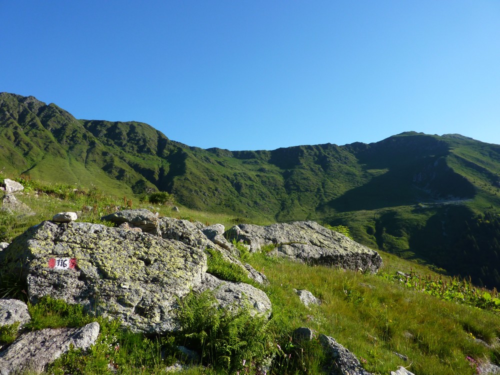 Si prosegue in direzione nord e, dopo aver superato una prima casera, si raggiunge la baita Belvedere (1824 m).