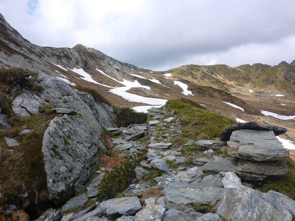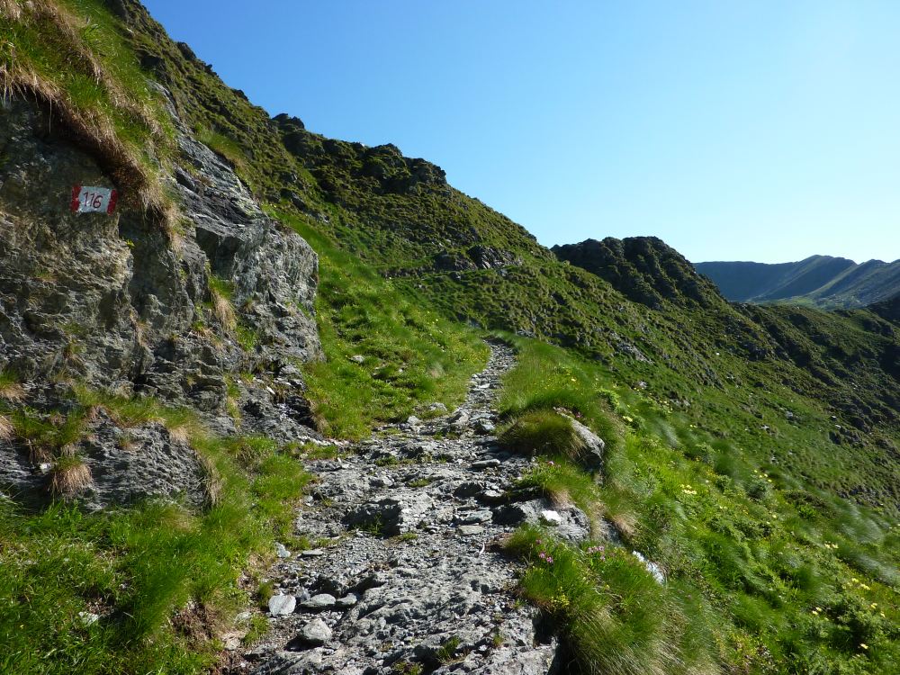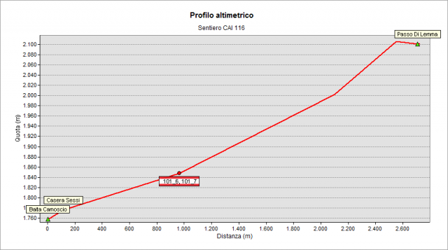 Con regolari tornanti si sale un ripido pendio erboso fino a raggiungere il passo di Lemma (2137 m) ivi incrociando il sentiero 101.