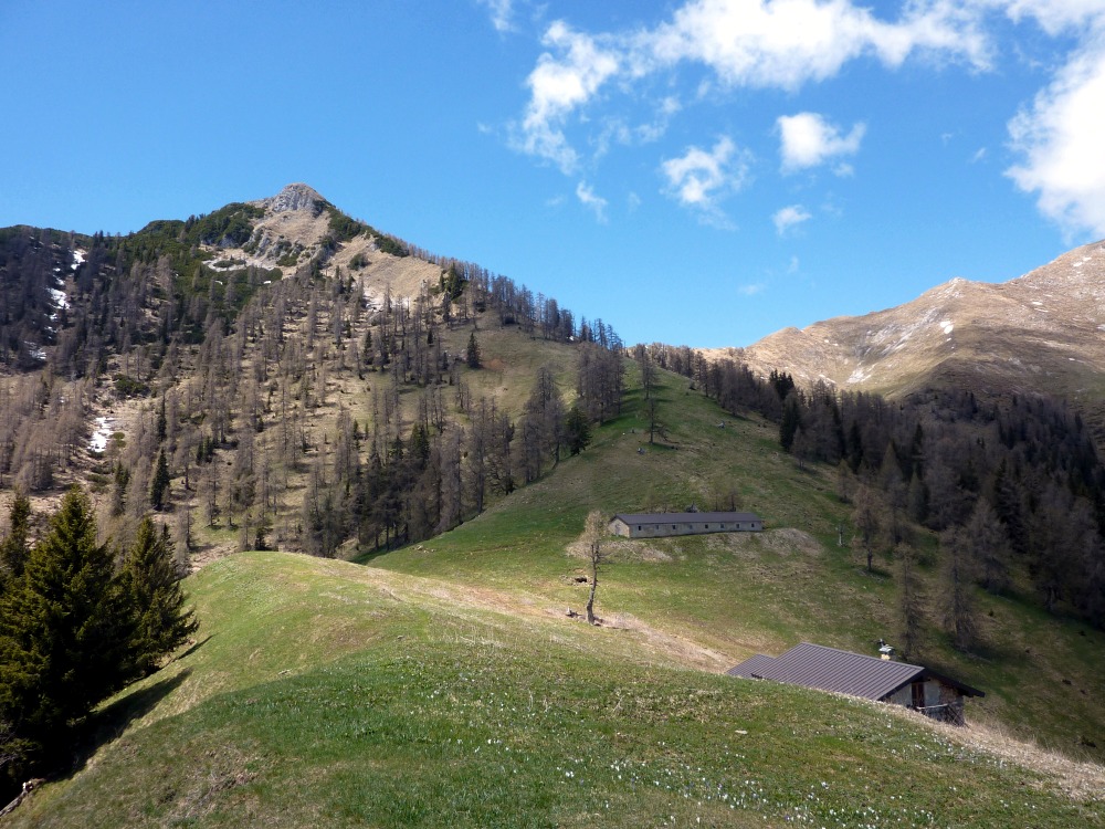 Il sentiero prosegue e, costeggiando dapprima i Baitelli e poi la baita Quedro, giunge sino al Forcolino di Torcola (1856 m), dove si congiunge con il sentiero 119.