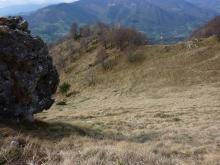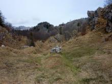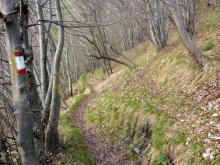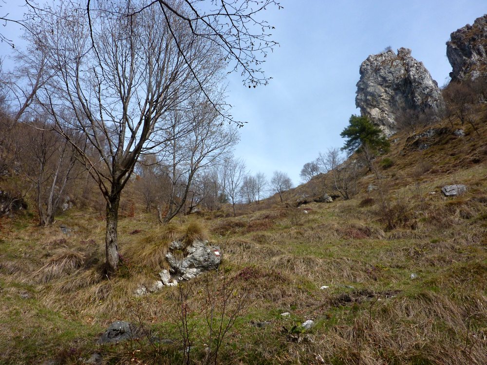 Dal Ponte del Becco (S.P. che sale in Val Taleggio - 593 m) si percorre per un breve tratto la valle Asinina per poi piegare verso est (destra) e proseguire su sentiero a tratti ripido per terreno boscoso. Arrivati in vicinanza della baita di Cantiglio (1067 m) si sale sulla sinistra e si rimonta la costa erbosa fino ad un colletto posto sotto la Corna dei Porci. Il sentiero prosegue ora verso nord-est, a tratti nel bosco tra vallette e pinnacoli rocciosi senza grossi dislivelli, fino ad un colletto che conduce con una breve discesa alla baite Cancervo (1653 m) e al sentiero 102.