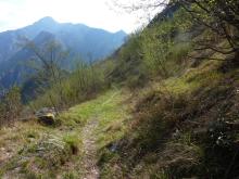 Dalla frazione Pianca di San Giovanni Bianco (810 m), nei pressi della Chiesa parte il sentiero che, in direzione est, procede a mezzacosta con percorso quasi pianeggiante. Si prosegue con percorso tortuoso attraversando numerosi costoni e vallette fino alla valle del Bodar (che scende dalla Corna del Tetto). Oltre, il sentiero sale con più decisione per condurre infine a Cantiglio (1082 m) - incrocio con sentiero 130.