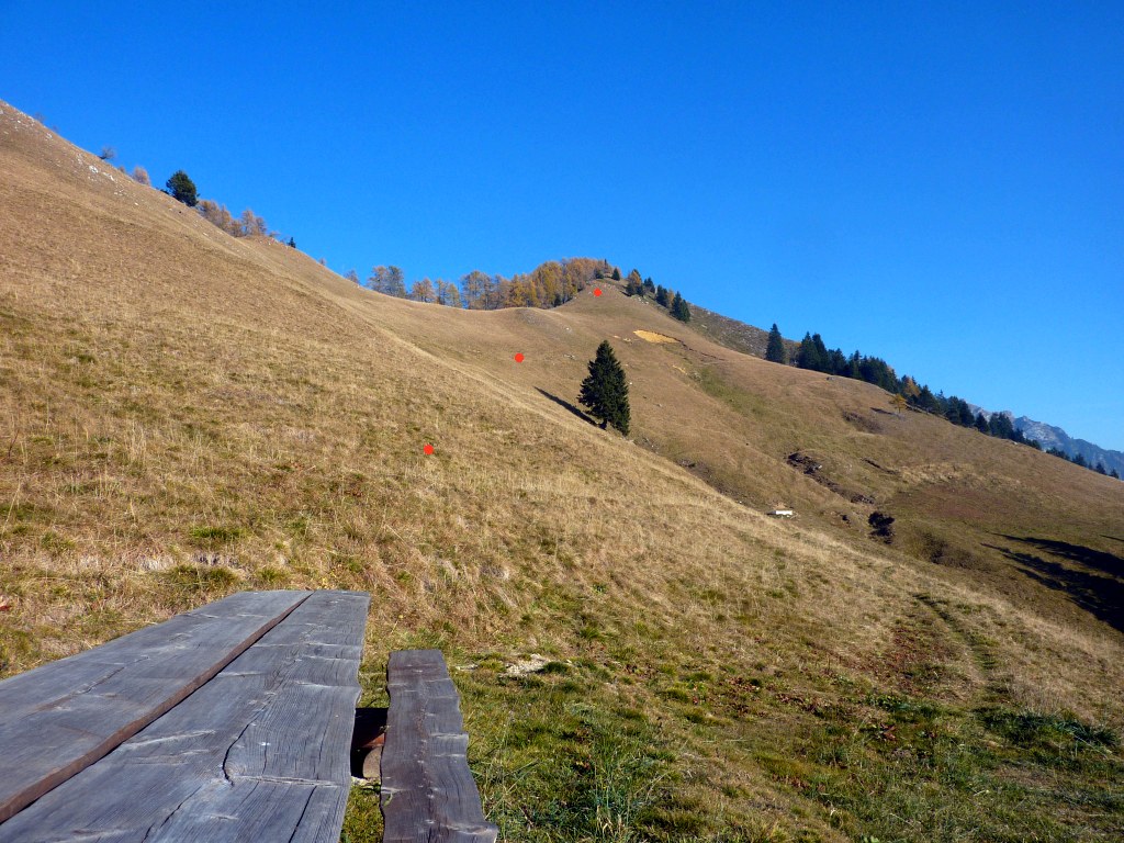 Prima di arrivare alla frazione Le Piazzole di Piazzatorre (781 m), sulla sinistra parte il sentiero (su strada forestale) in direzione nord. A mezzacosta si entra nella Valle di Pegherolo che si attraversa su un ponte a quota ca. 920 m. Ora su sentiero, si sale nel bosco sino a giungere alla sorgente detta "Fontana di Sambiör" così sfiorando - nei bei Prati di Pegherolo posti subito al di sopra del sentiero - le località Sambiör e Ca' Olte (1100 e 1180 m). Sempre risalendo la valle del Brembo in direzione nord si raggiunge la località Malconvento e, continuando in falsopiano, si attraversa la valle del M. Cavallo fino alla località Ronco. Il sentiero ora sale per raggiungere in breve tempo i pascoli presso la Casera Alpe Cavallo (1517 m), sorvegliati dai contrafforti sud-occidentali del Pizzo Cavallo. Inoltrandosi di nuovo nel bosco, si sale ancora un poco sino a raggiungere dapprima la baita Scandolera e, infine, i vasti prati del Piano di Begna. Raggiunta baita Begna (1716 m), il sentiero la oltrepassa e gira poi a destra (verso est) - entrando così in val Terzera - per poi scendere sino a incrociare il sentiero 115 (a quota 1620 m circa).