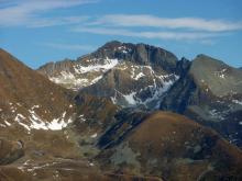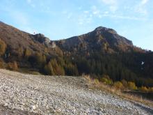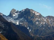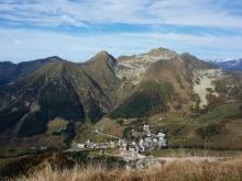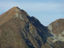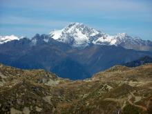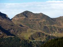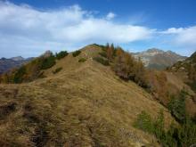 Il sentiero punta con decisione verso sud, per bosco rado e prati, verso la cima del pizzo del Vescovo. Giunti a un prato posto di fronte al ripido pendio che porta in alto alla sella tra il M. Valgussera e il Pizzo del Vescovo, si lascia il sentiero che prosegue sulla dx (diretto verso il M. Brate 1932 m) e ci si dirige in direzione sud-est. Il sentiero acquista via via quota sino a sfiorare ( sulla loro dx ) dei paravalanghe grigi e sbucare, infine, sulla larga sella ( 2015 m ) posta tra Il M. Valgussera e il Pizzo del Vescovo. La traccia volge ora a destra (sud-ovest) risalendo il versante del monte sino a giungere in cima al panoramico monte Valgussera (2183 m) per poi scendere con decisione al Passo della Croce ( 1953 m ).