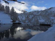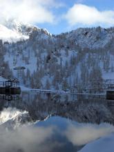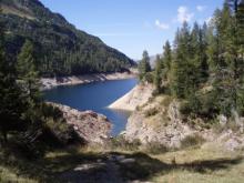 Poche centinaia di metri dopo, nei pressi della casa dei guardiani dell'Enel, si incrocia il sentiero 211 e da qui si prosegue su un'unica traccia fino al rifugio Laghi Gemelli (1968 m).