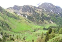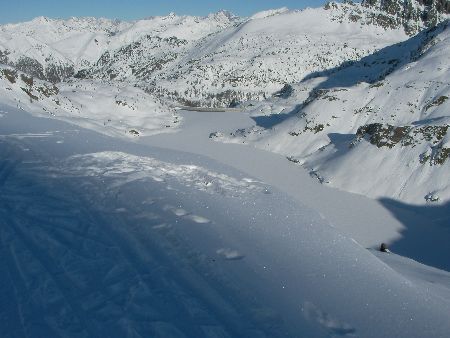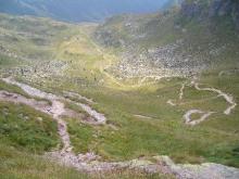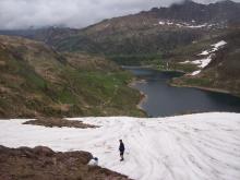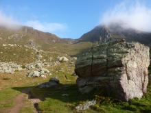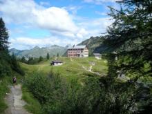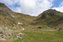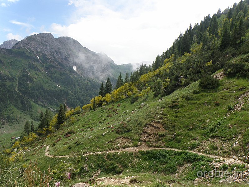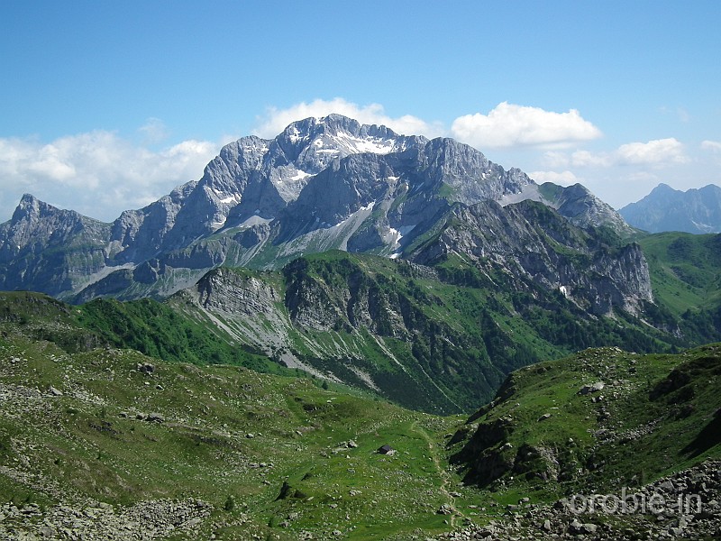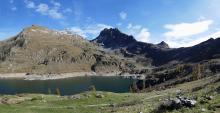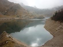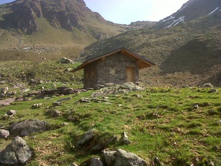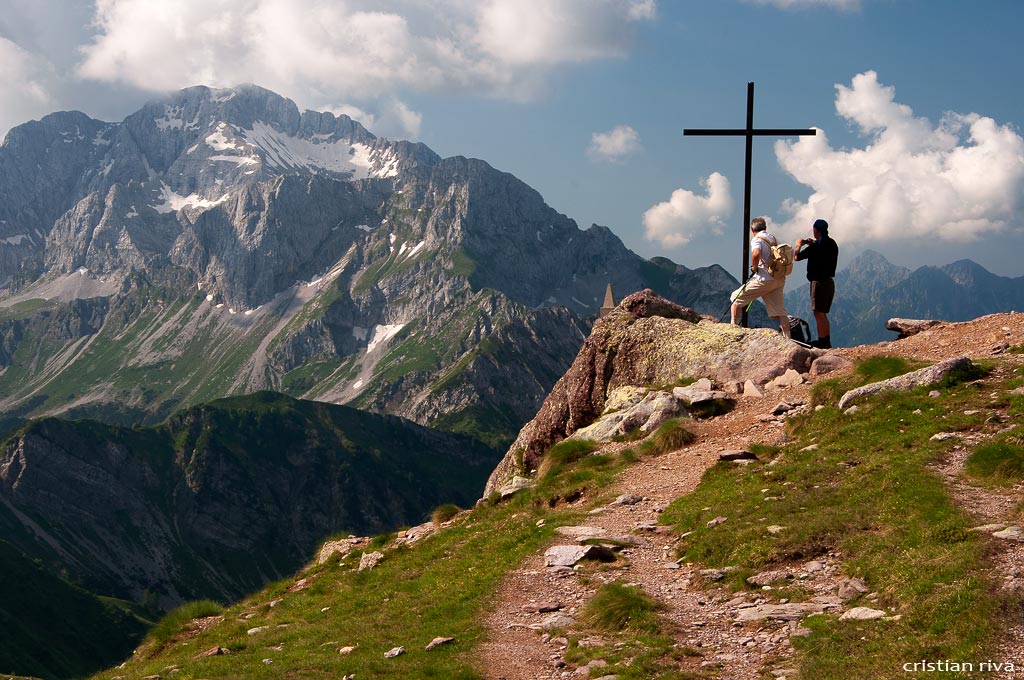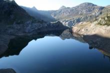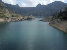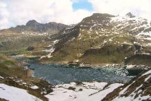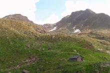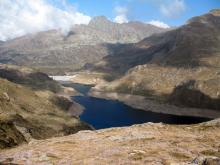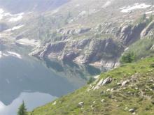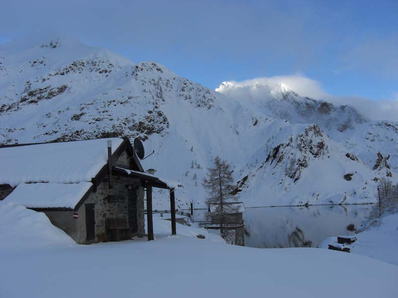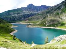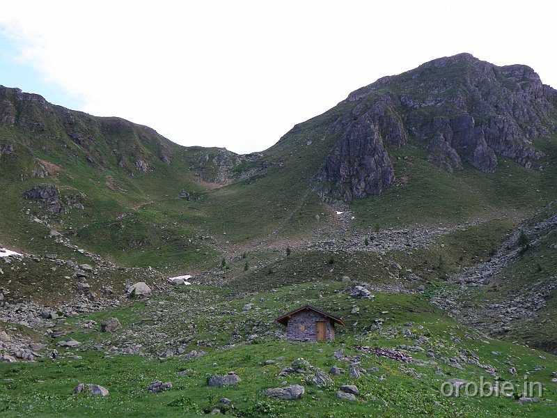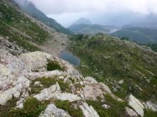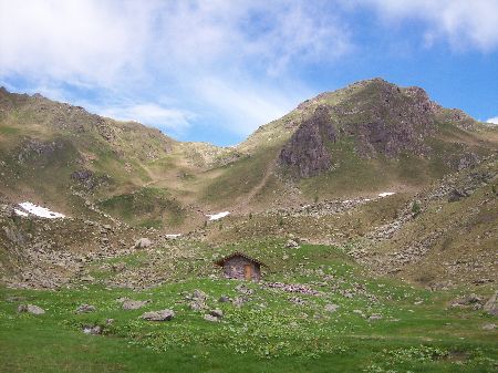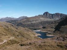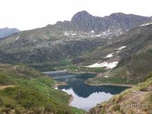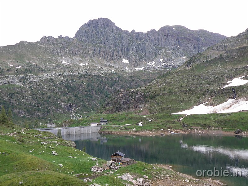 Dal parcheggio presso le baite di Mezzeno si inizia a guadagnare quota sul versante sinistro della valle (orografico destro) lungo il sentiero che porta alle prese dell'acquedotto. Si esce dal rado bosco a quota 1800 m circa e, sulla sinistra, si lascia il sentiero 217 che sale ai Tre Pizzi. Attraversando i pascoli si raggiungono la baita delle Foppe (1933 m) e la baita della Croce. Il sentiero riprende quindi a salire con decisione per guadagnare il ripido pendio che conduce al passo di Mezzeno (2144 m). Dal passo si può godere di un'ottima visuale sui Laghi Gemelli. Si prosegue in discesa fino a raggiungere il sentiero 216 che proviene dal rifugio Alpe Corte e le sponde del lago che si costeggia fino al rifugio dei Laghi Gemelli (1968 m).