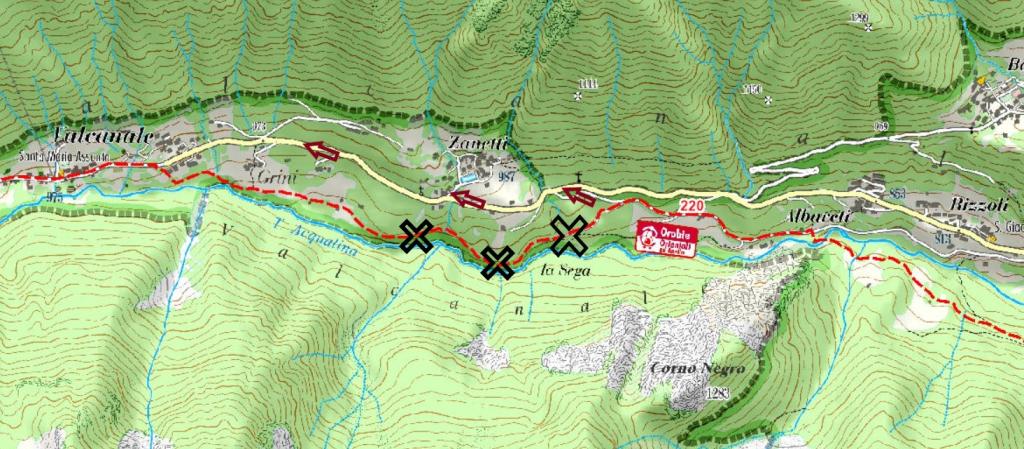 Dopo aver attraversato il torrente nei pressi di Albareti, si segue il sentiero didattico "Acqualina" e si passa nei pressi di una vecchia segheria ristrutturata.