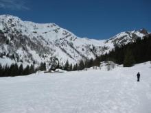 Una volta giunti a Valcanale (il paese, 987 m) si segue la strada dell'Alpe Corte fino al suo termine. Lì si incontra la strada forestale che porta al Rifugio Alpe Corte (1415 m).