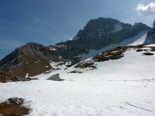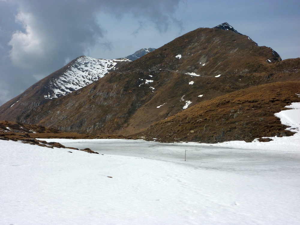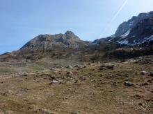 • Il Corno Branchino dal passo di val Vedra. Sulla dx: il passo del Branchino.