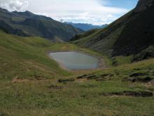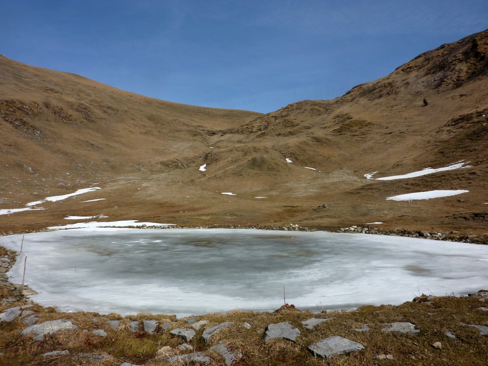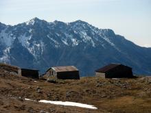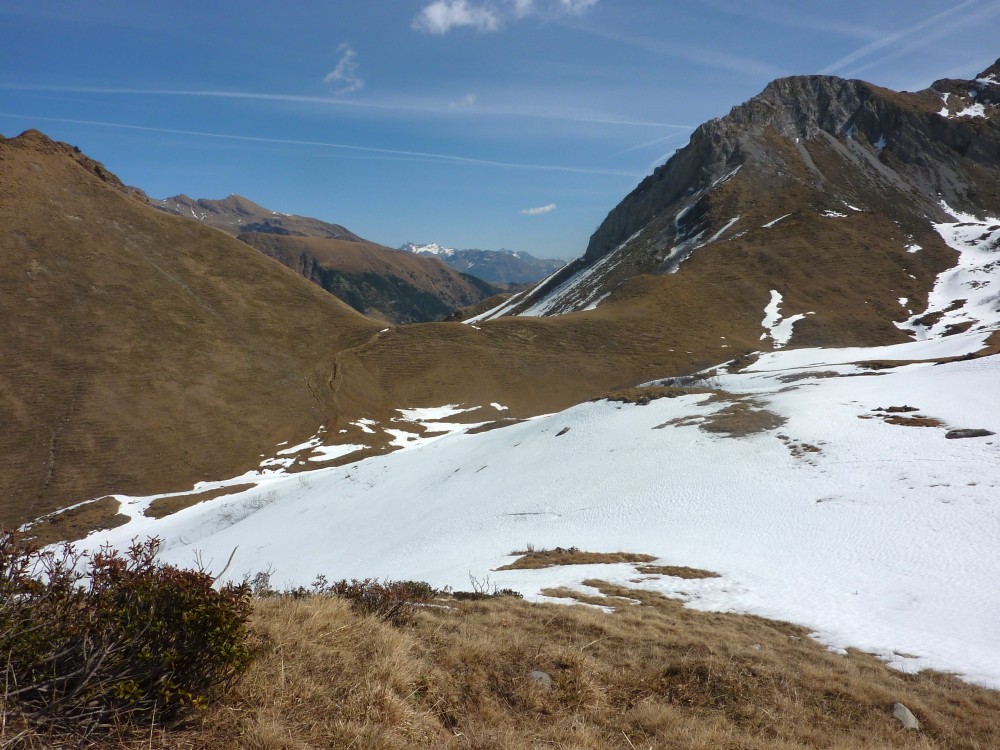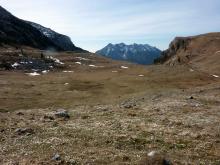 • I larghi pianori dell'alta val Vedra, interamente sorvegliata dall'Alben là in fondo
