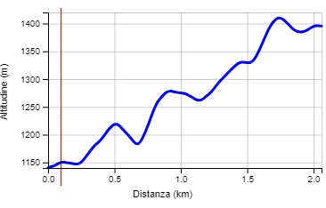 Descrizione In breve Zona Bassa e Media Val Seriana Difficoltà E: Escursionistico Esposizione Varie Periodo consigliato giugno-ottobre Attrezzatura consigliata scarponi ed abbigliamento da alta montagna Topografia Dislivelli Salita ca. 320 m Discesa ca. 65 m Quote Quota massima circa 1405 m s.l.m. Quota minima circa 1140 m s.l.m. Distanze Lunghezza circa 2100 metri Profilo altimetrico Sentieri collegati Sentiero 240: Parre - Baita Camplano Sentiero 241: Parre - Monte Vaccaro Scarica il file GPX Visualizza in mappa