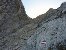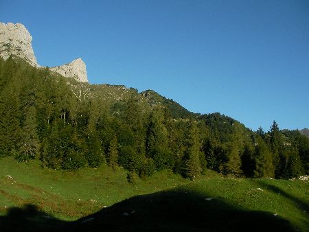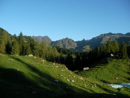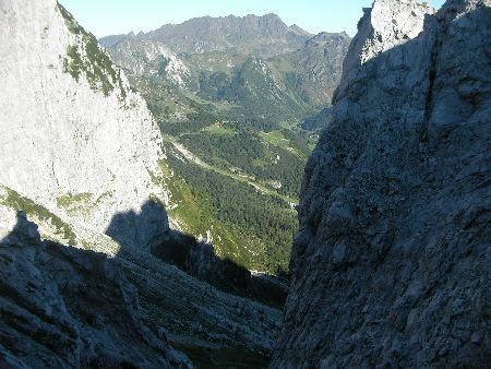 Il sentiero parte dal piazzale (1209 m) degli ex impianti di sci di Valcanale, posto al termine della strada che sale dal paese (ultimo tratto chiuso al traffico). Si cammina in direzione sud risalendo grosso modo quelle che erano le piste da sci, arrivando finalmente alla conca delle baite Vaghetto dove parte sulla destra il sentiero 266 (a quota 1425 m nelle vicinanze della Baita Vaghetto bassa). Si piega ora verso sinistra (sud-ovest), si raggiunge la baita Vaghetto alta (1446 m) e, dopo averla superata, si punta alla base delle pareti della Cima di Valmora. Si inizia a risalire il pendio attraversando i ghiaioni che conducono infine al ripido canalino (Escursionisti Esperti) che termina al passo del Re (1989 m). Con facile sentiero in discesa attraverso i pascoli si arriva al rifugio baita Santamaria in Leten (1720 m - incrocio con sentiero 240 e sentiero 242).