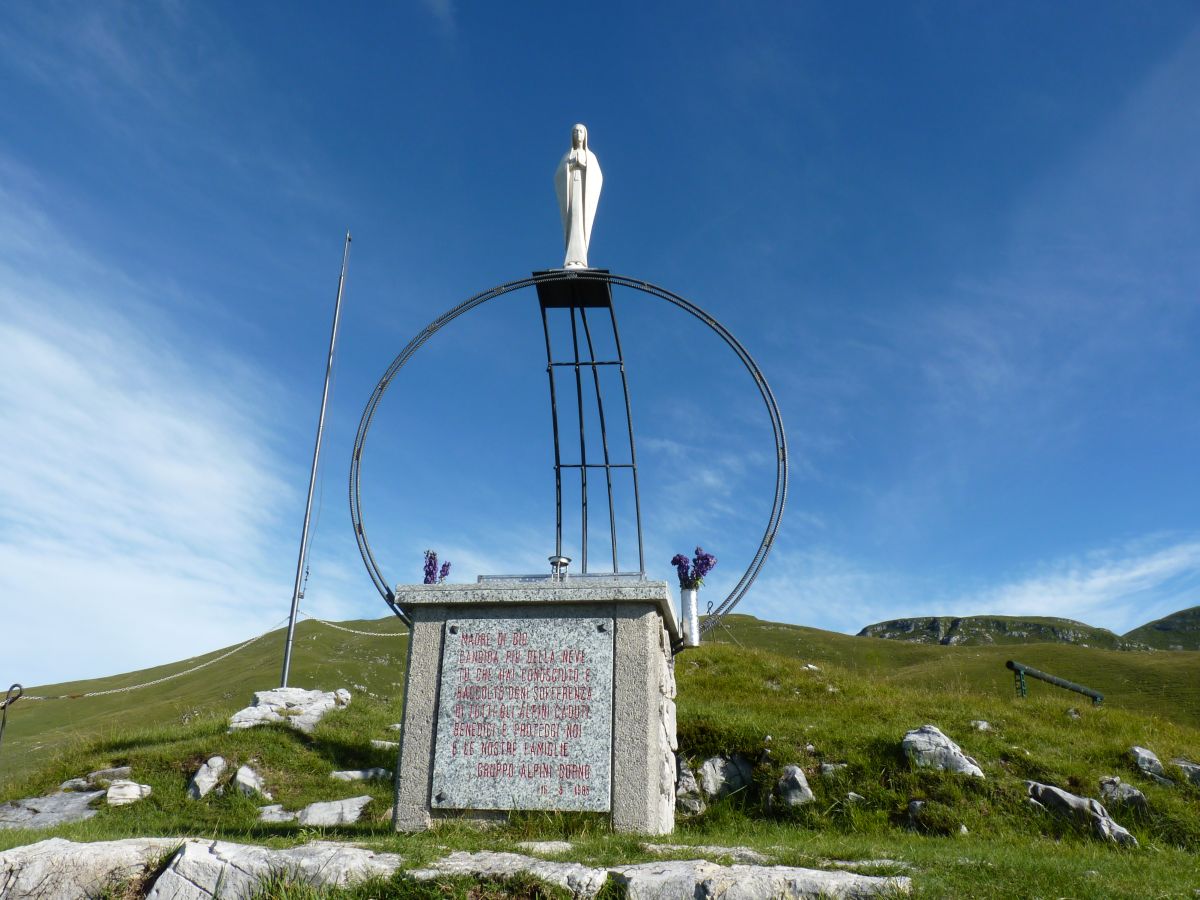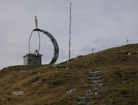 Ora si sale a sinistra verso l’ormai vicina e visibile croce della Cima di Grem (2049 m), alla quale si giunge in circa 15' (3 h dalla partenza): tale croce, trasportata a spalla a pezzi, è stata collocata in vetta nel lontano 1962 in memoria di Don Severino Tiraboschi di Gorno.